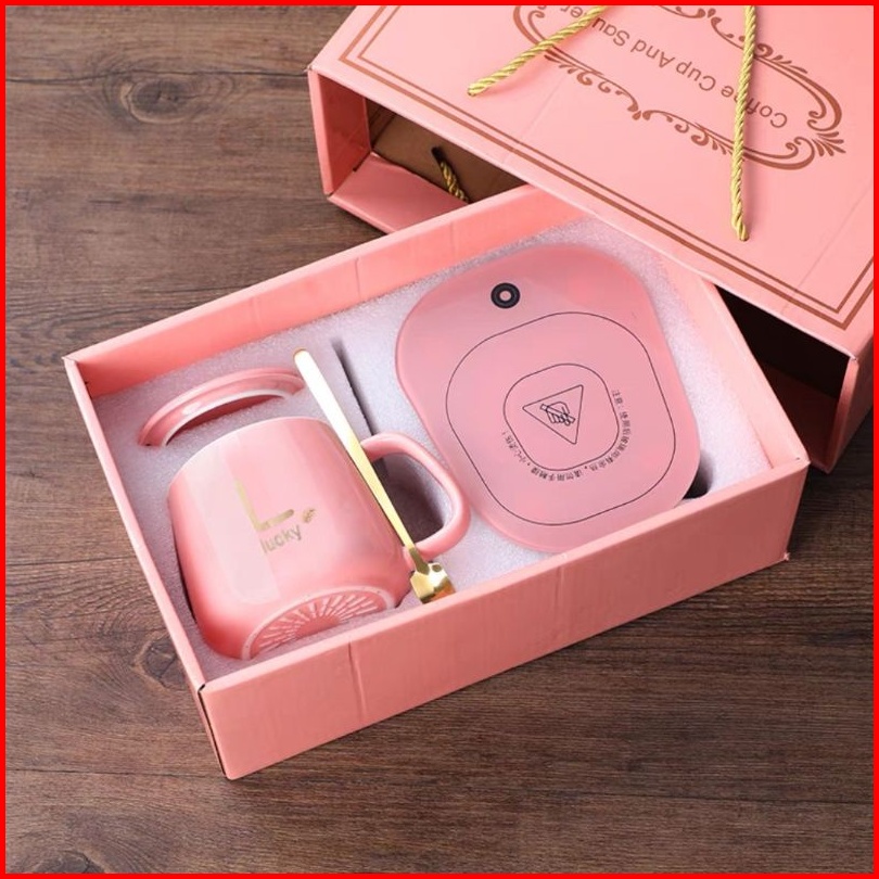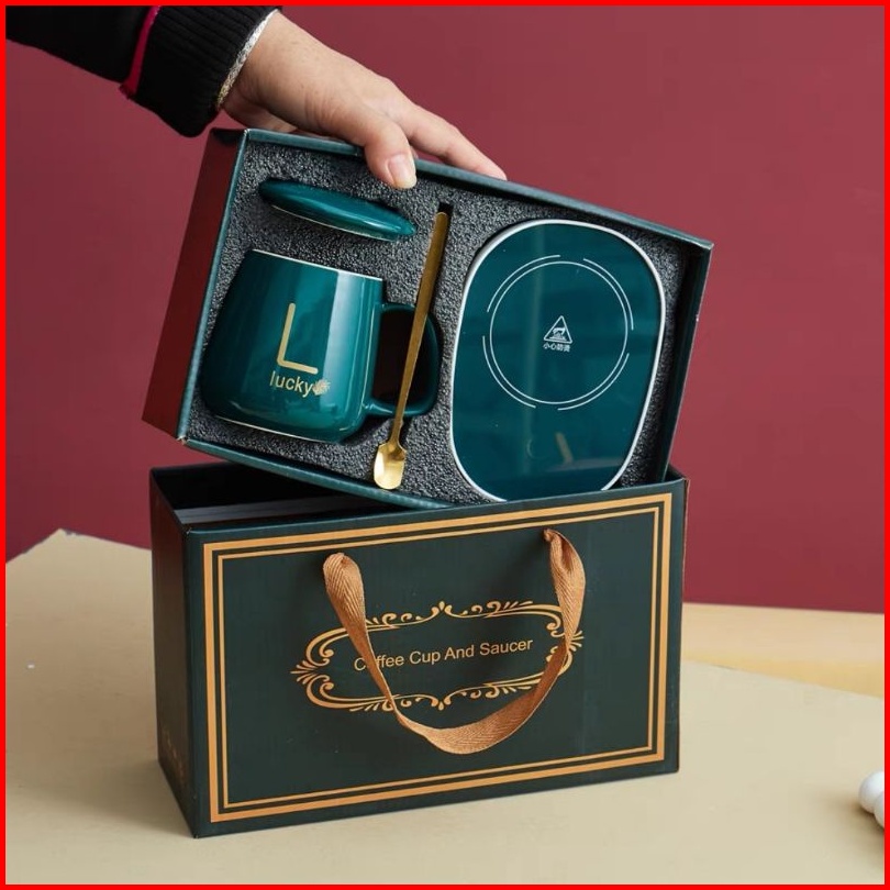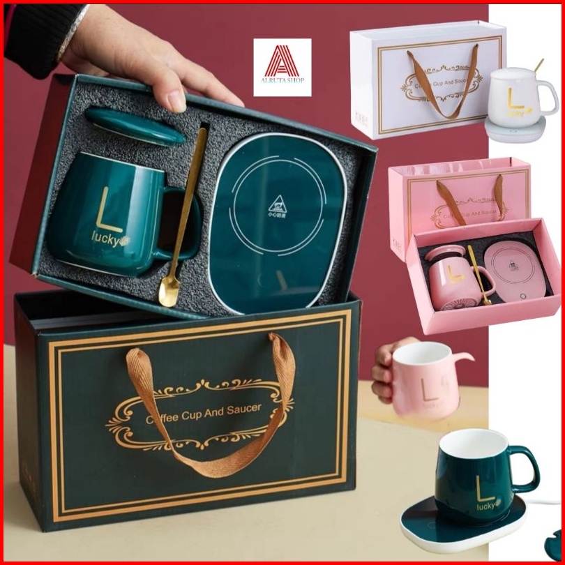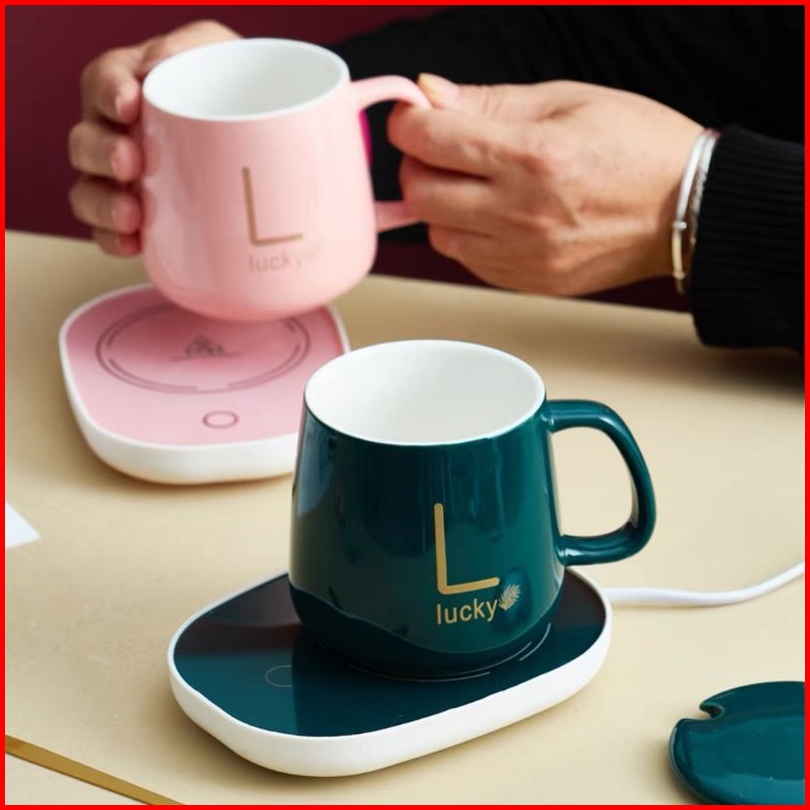 Mug Elektrik Set Cramik Cangkir Elektrik Penghangat Kopi Atau Teh Dengan Suhu 55 Derajat