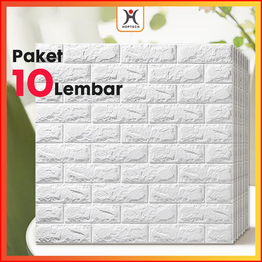 Hoptech - Paket 10 Pcs Wallpaper Dinding 3d Foam Bata Timbul 3d Bata Classic Brick Putih 70x77cm