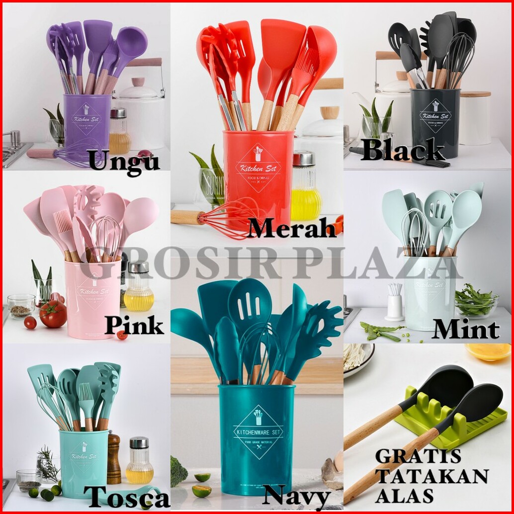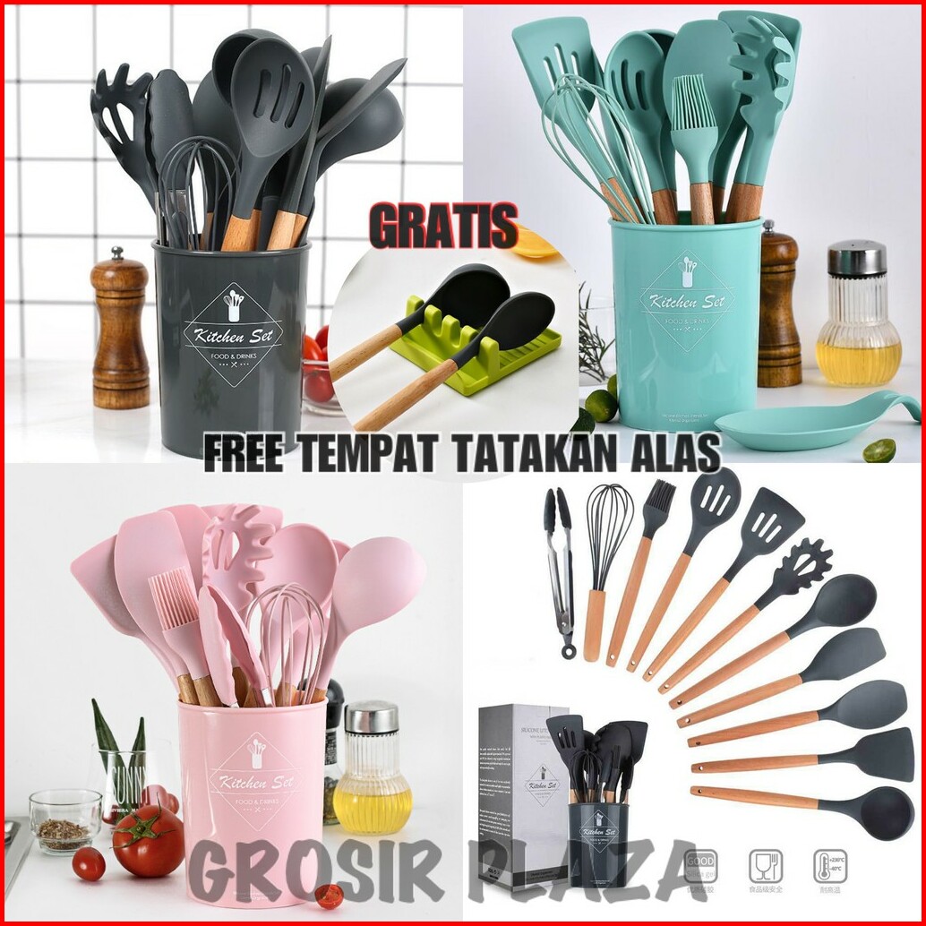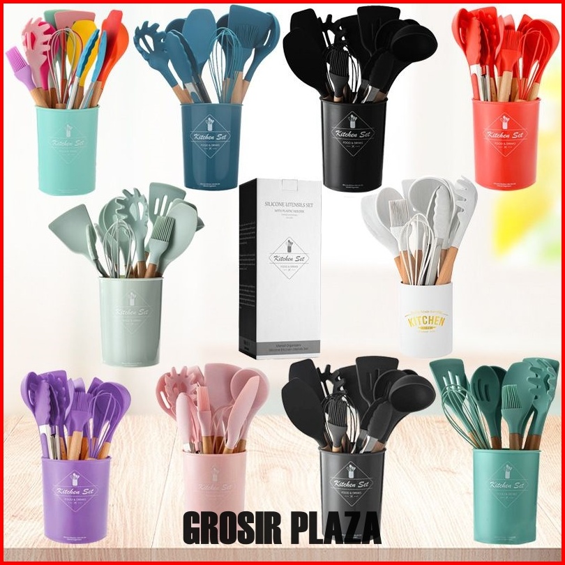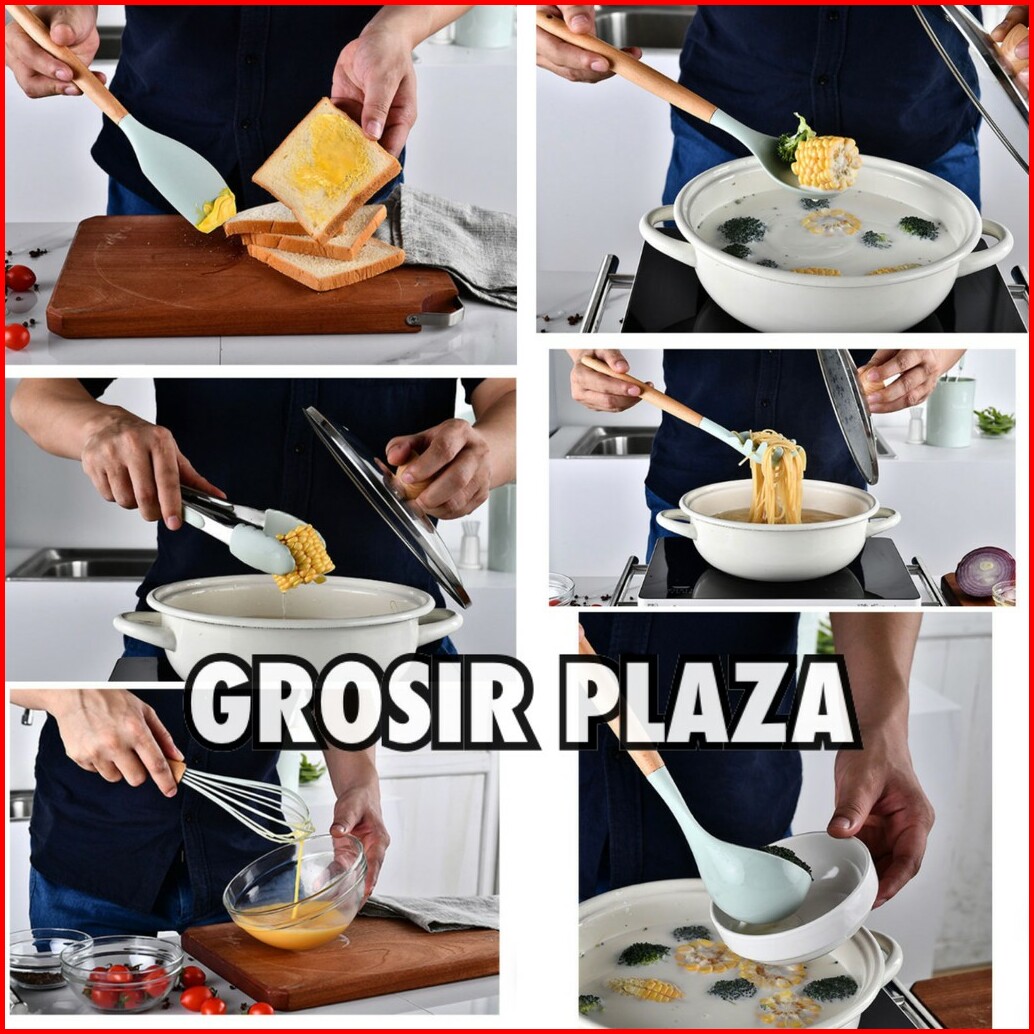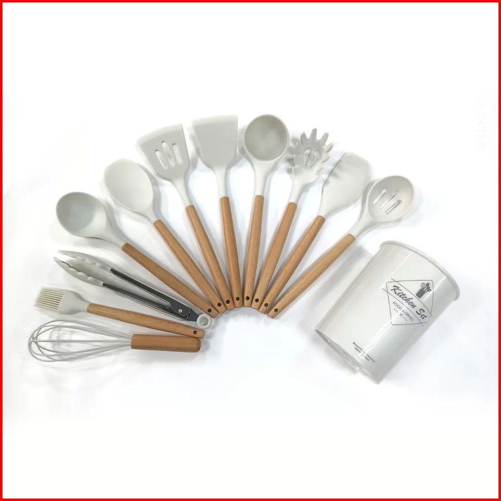 12pcs Spatula Bahan Kayu Dan Silikon Anti Lengket Untuk Memasak Sup Pr104
