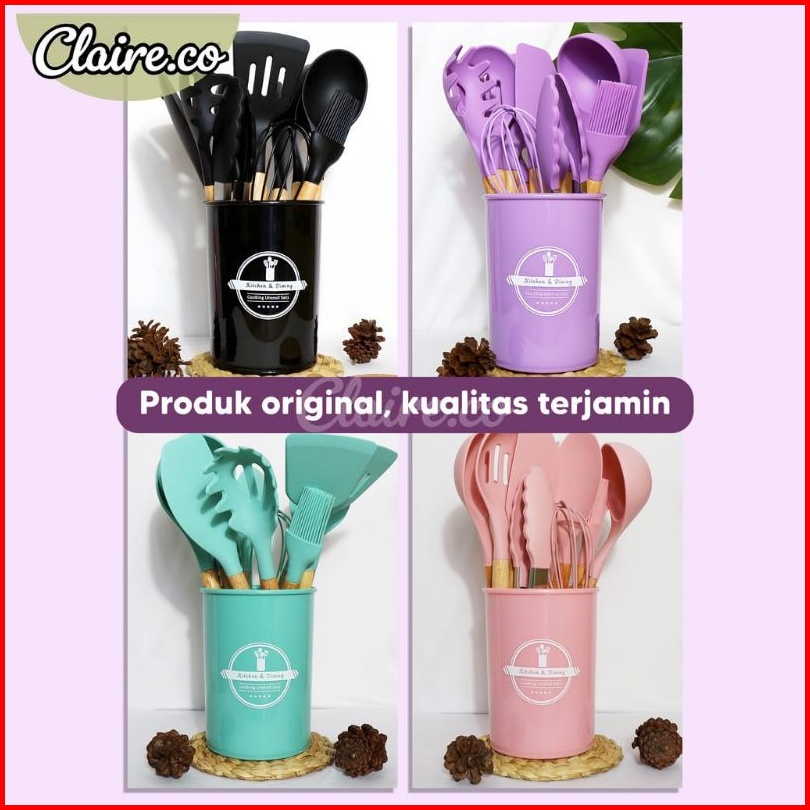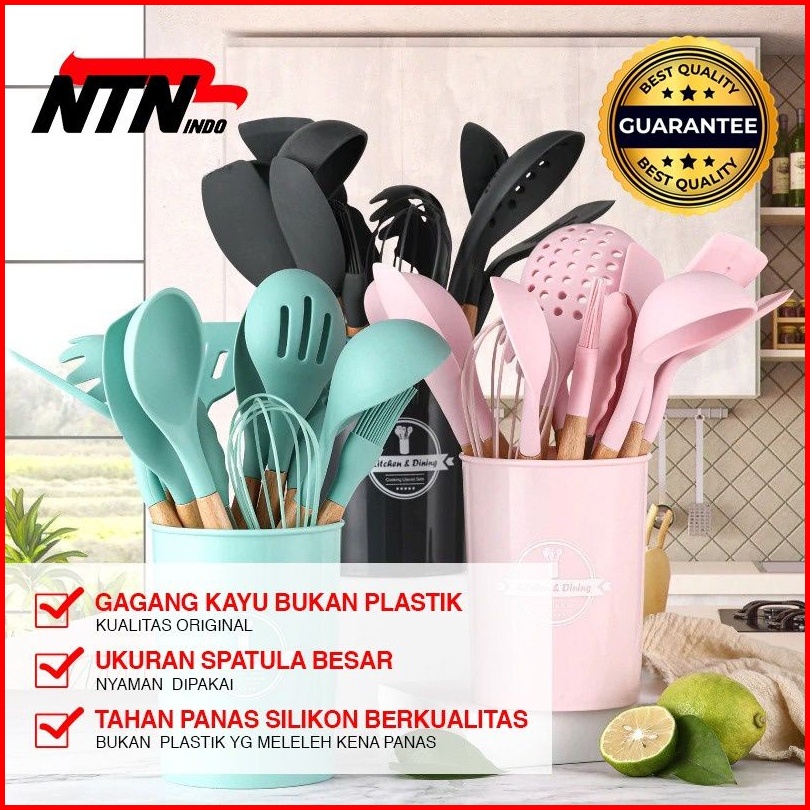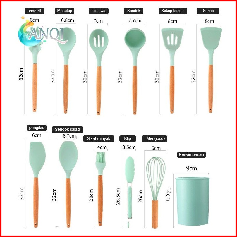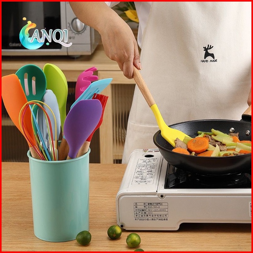 Silicone Utensil Set 12pcs Peralatan Spatula Silikon Sutil Kitchen Set Free Ember Ganggang Kayu