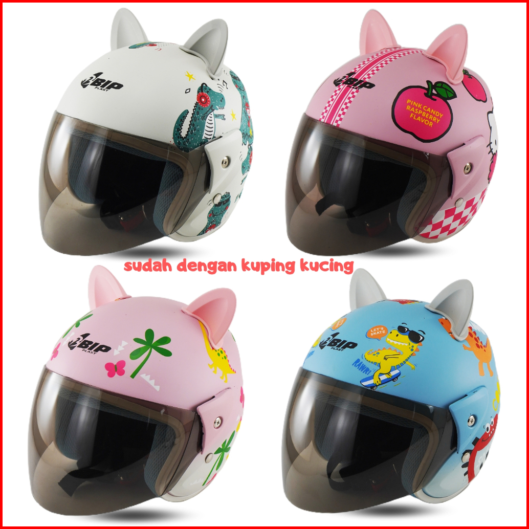 Helm Anak Cowok Cewek 2345678 Tahun Motif Lucu Kuping Cat Sni