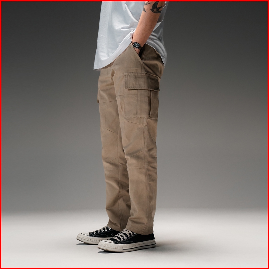 Mickout Slava Cargo Pants - Celana Panjang Pria Rigid Cotton Straight Fit - Khaki