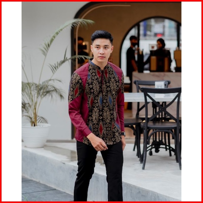 Kemeja Batik Pria Nuc.id Raden 02 Maroon-hitam
