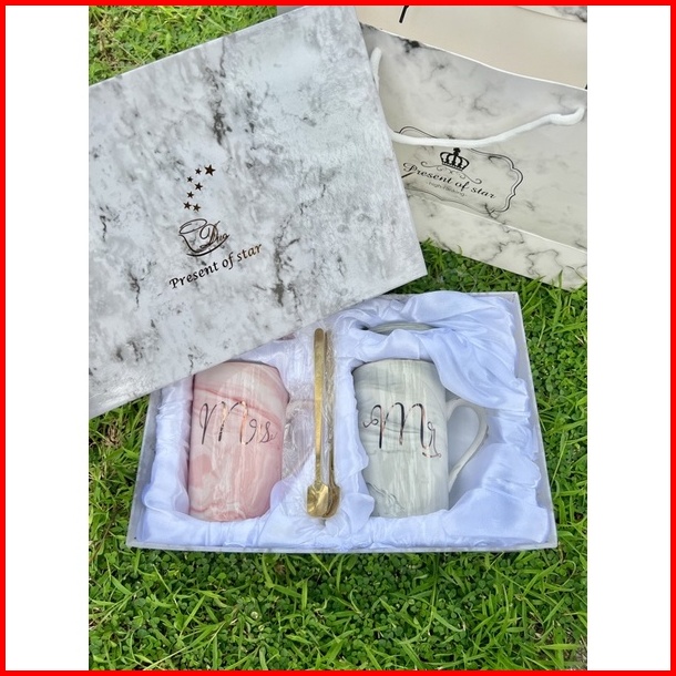 Cangkir Gelas Couple Mr Mrs Mug Couple Keramik Marble Marbel Marmer Box Wedding Gift Set Kado