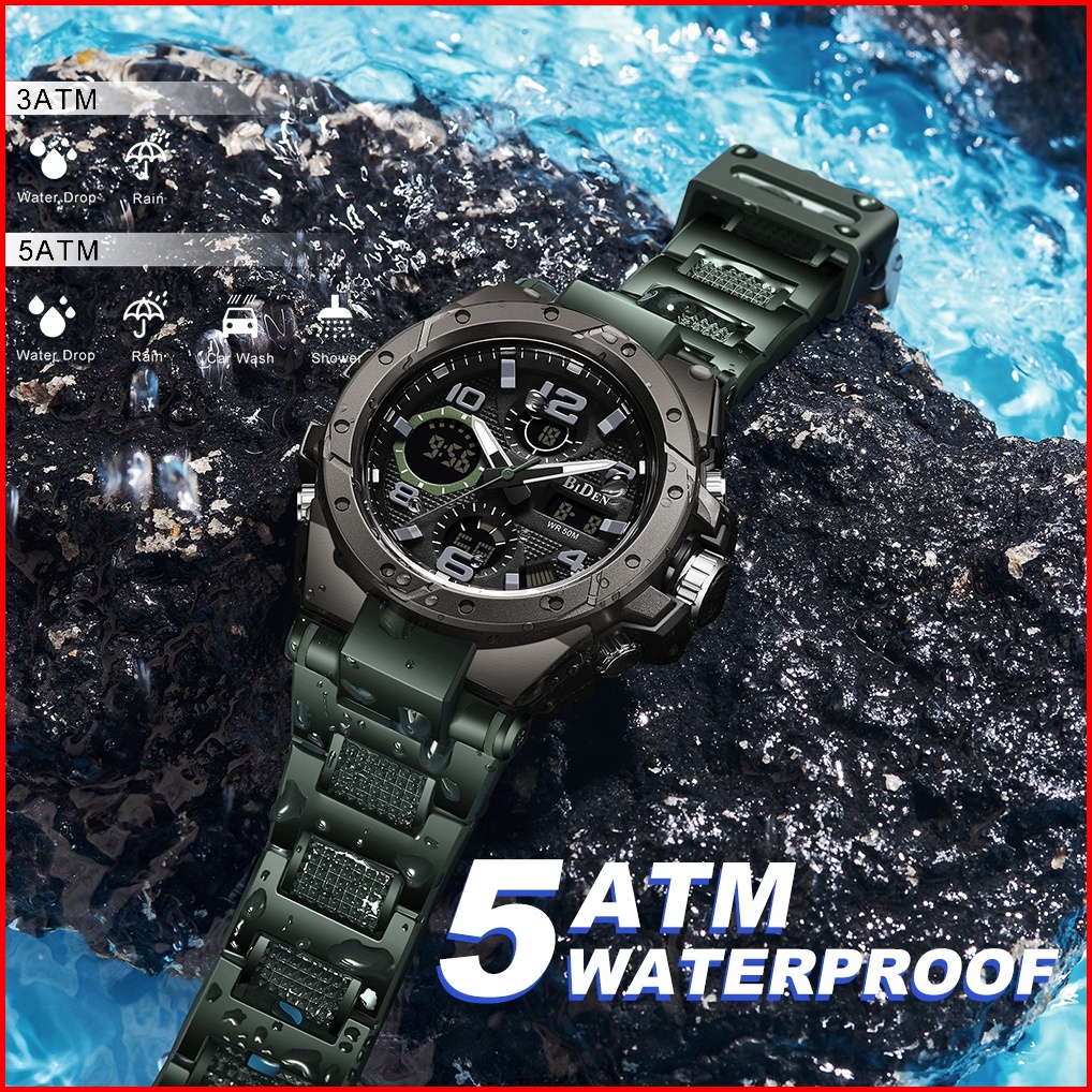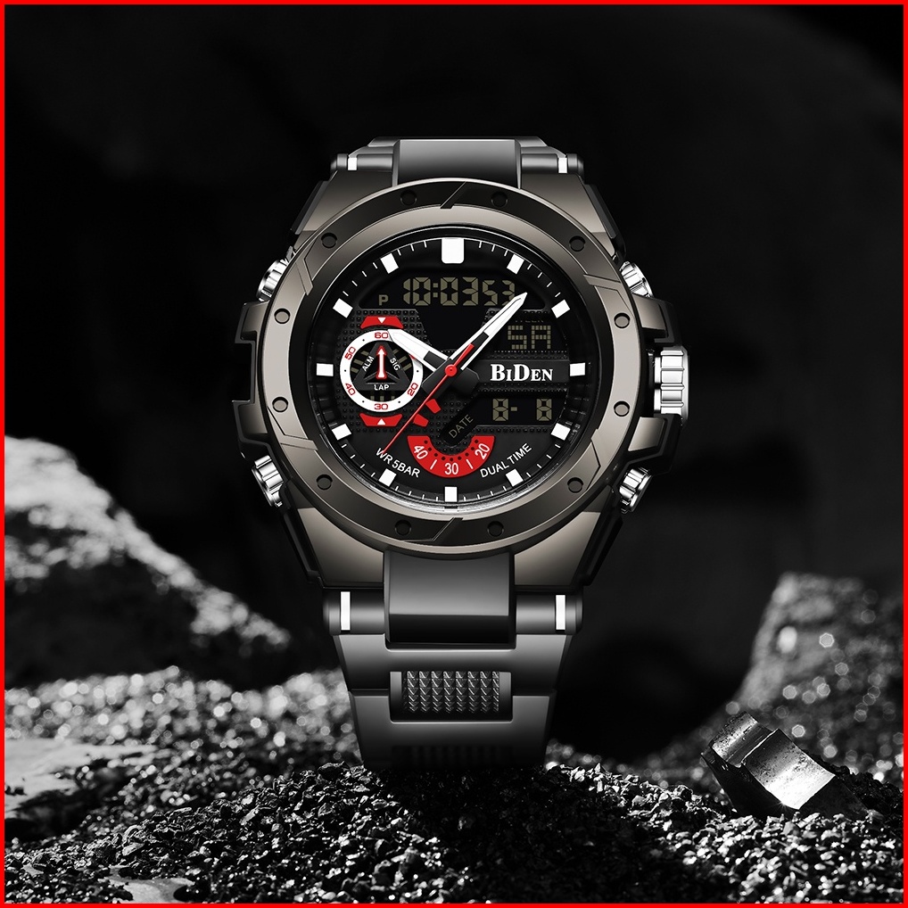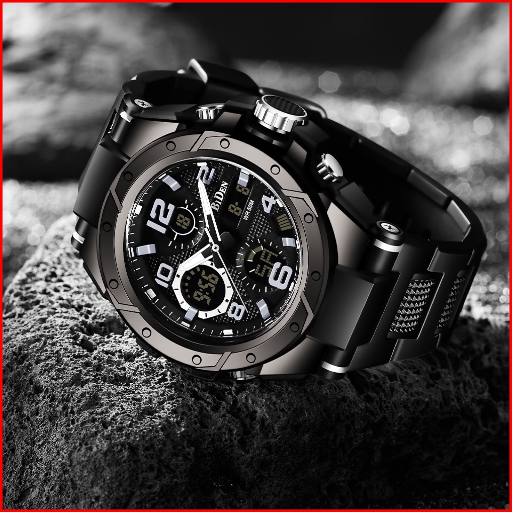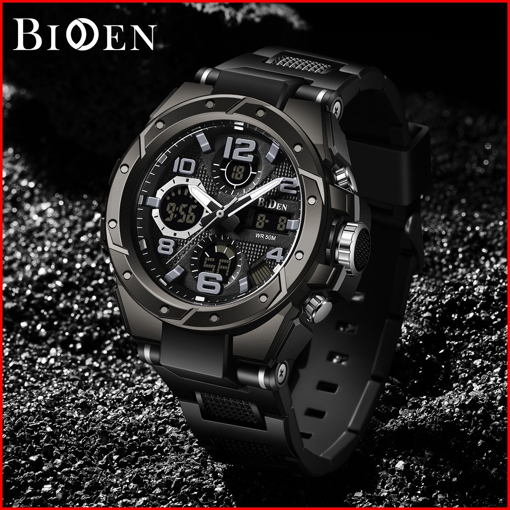 Biden Jam Tangan Pria Digital Anti Air Original Multifungsi Bercahaya Alarm Tali Silikon Jam Tangan Cowok