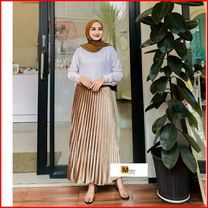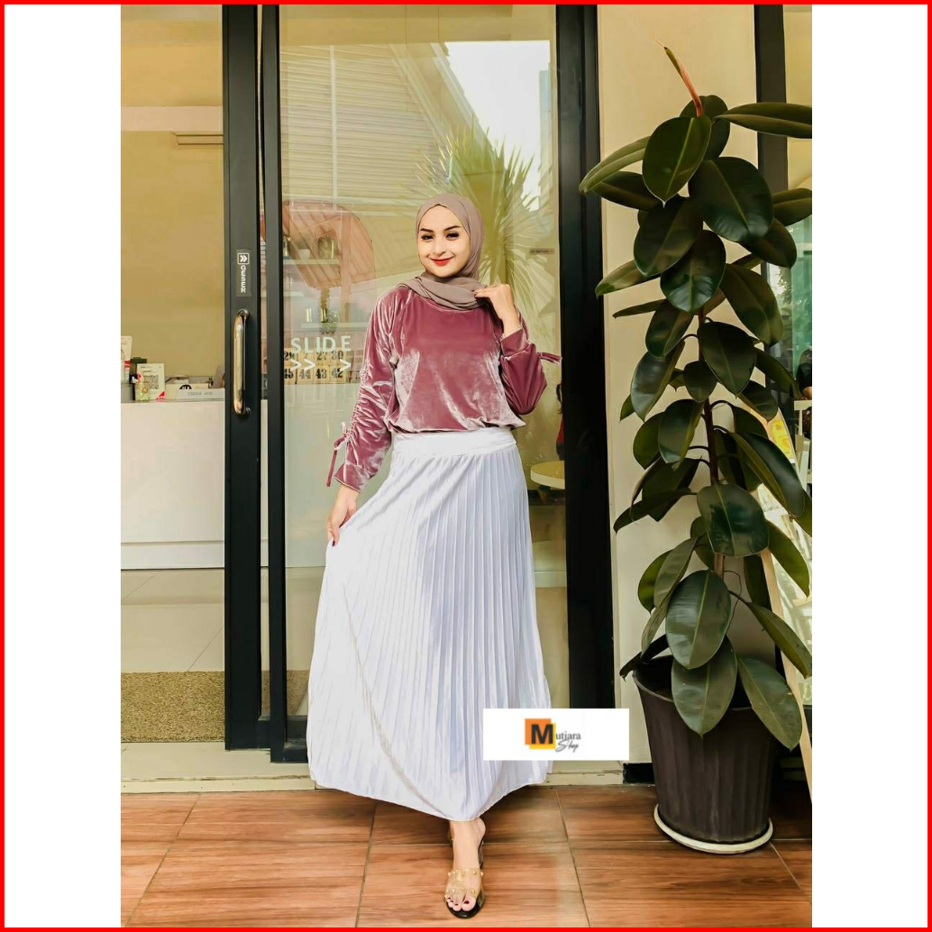 Rok Bludru Velvet Premium Panjang Mewah Plisket Bludru Mewah