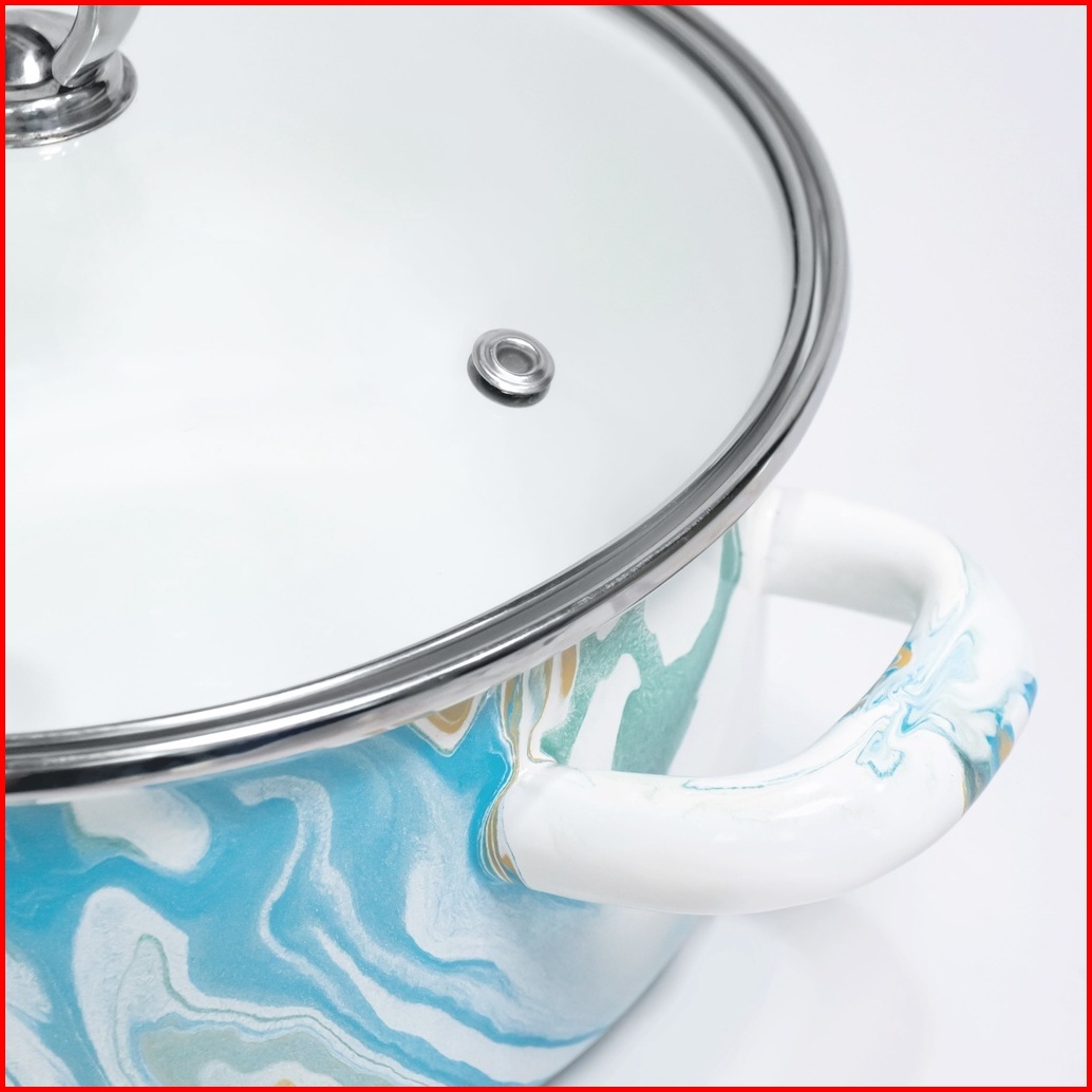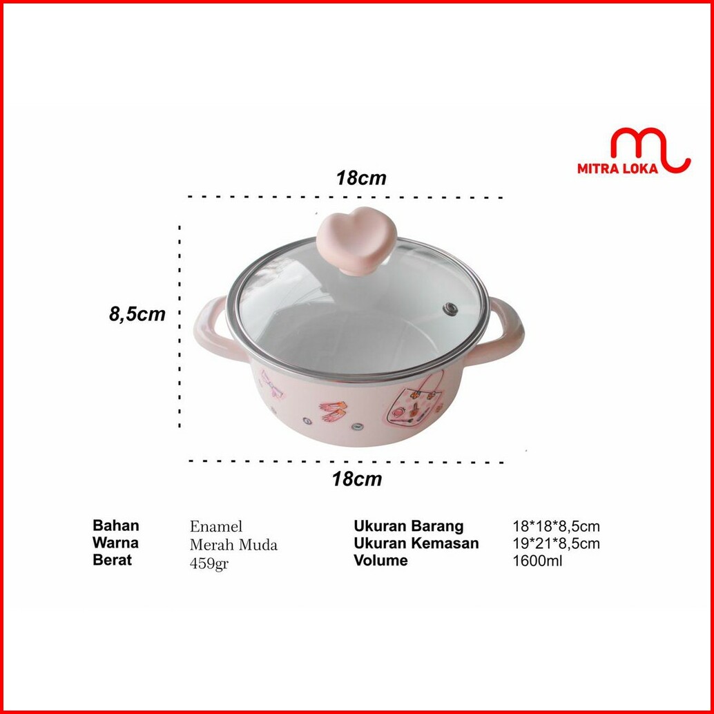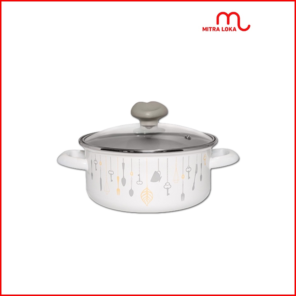 Mitra Loka Panci Set Tutup Kaca Enamel Chefina 18cm 20cm 24cm Panci Rebus Mie Panci Masak Dutch Oven Mpasi