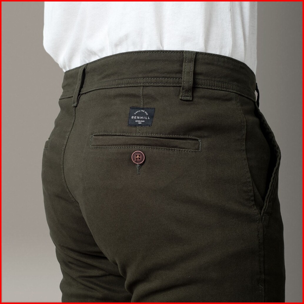 Benhill Celana Pria Panjang Chino Pants Slim Fit Katun Stretch Hijau Army 108-109-327