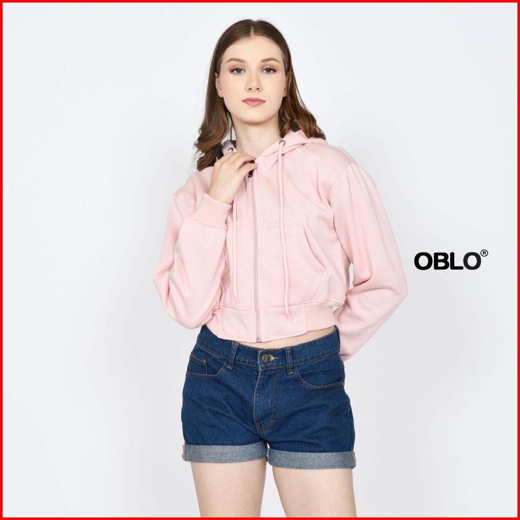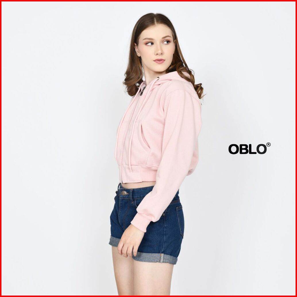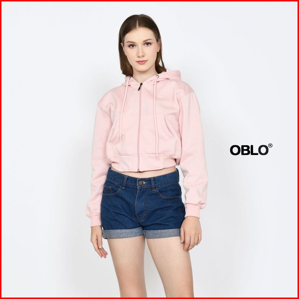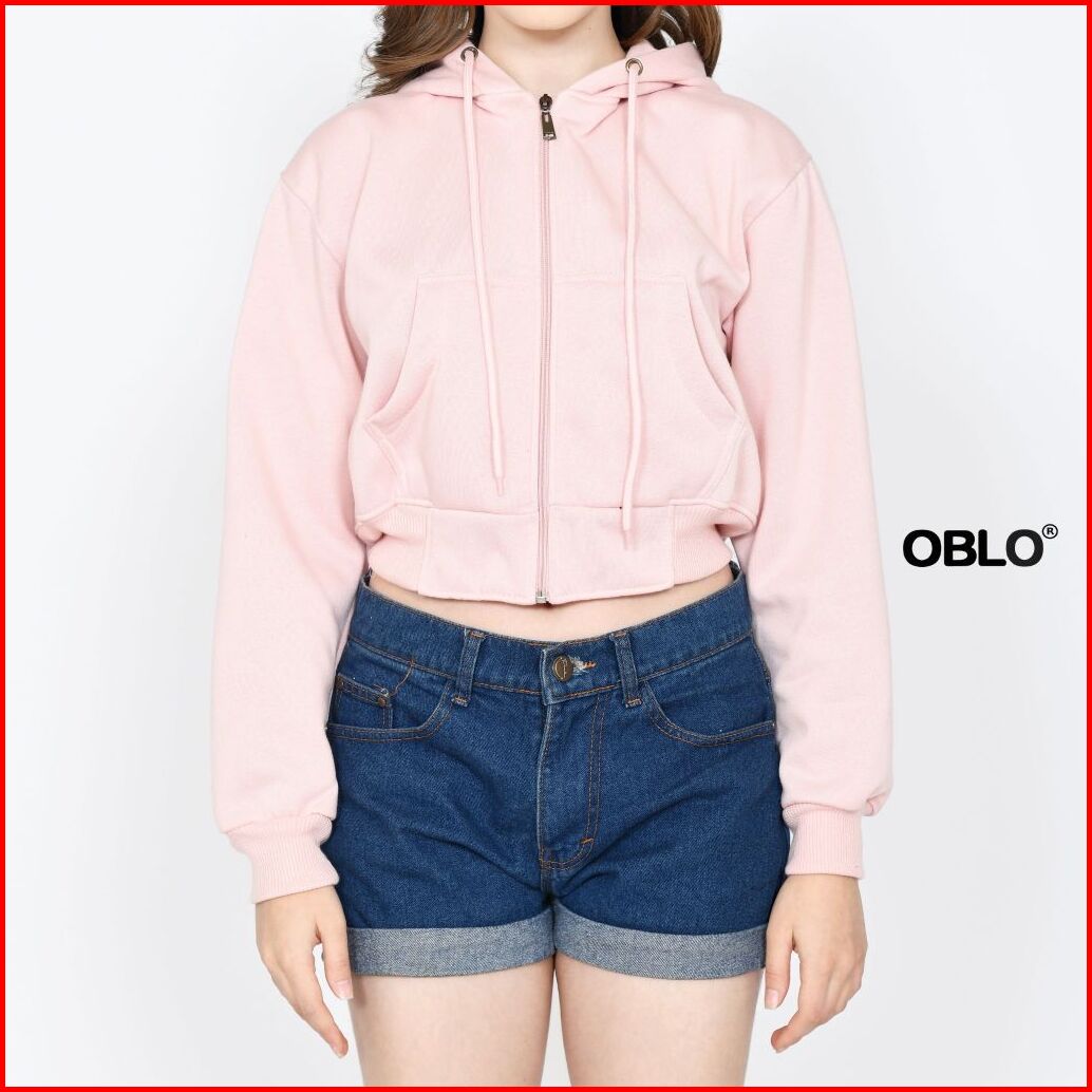 Oblo Basic Hoodie Crop Zipper Jaket Resleting Wanita Allsize