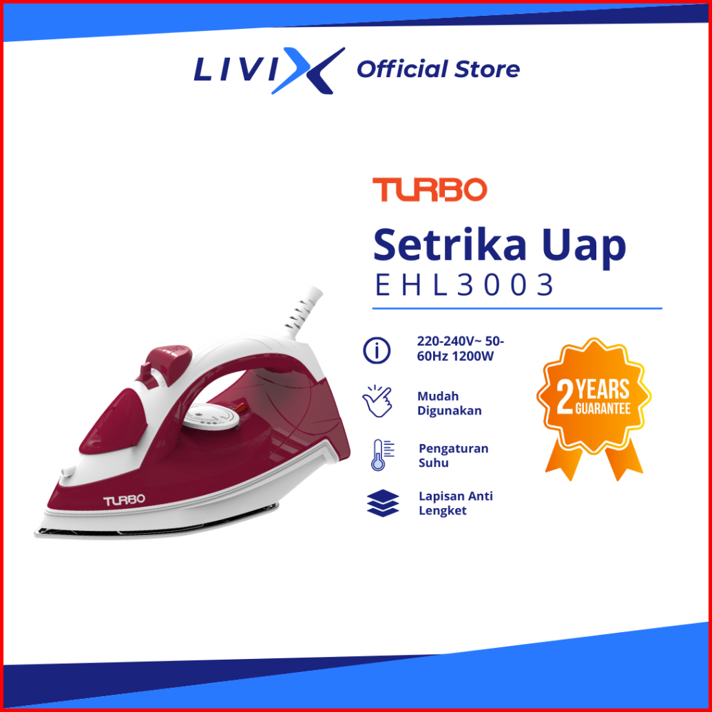 Turbo Setrika Uap Ehl3003 Anti Lengket Merah Biru