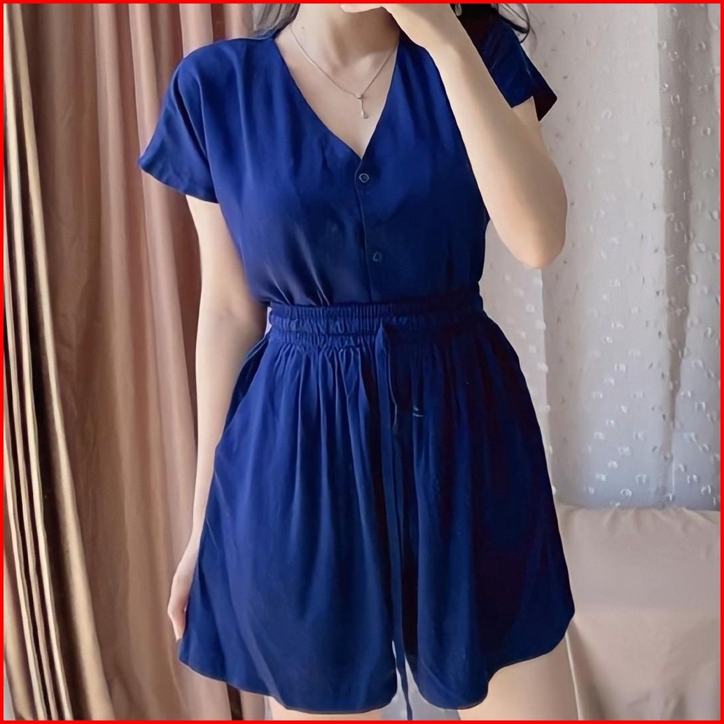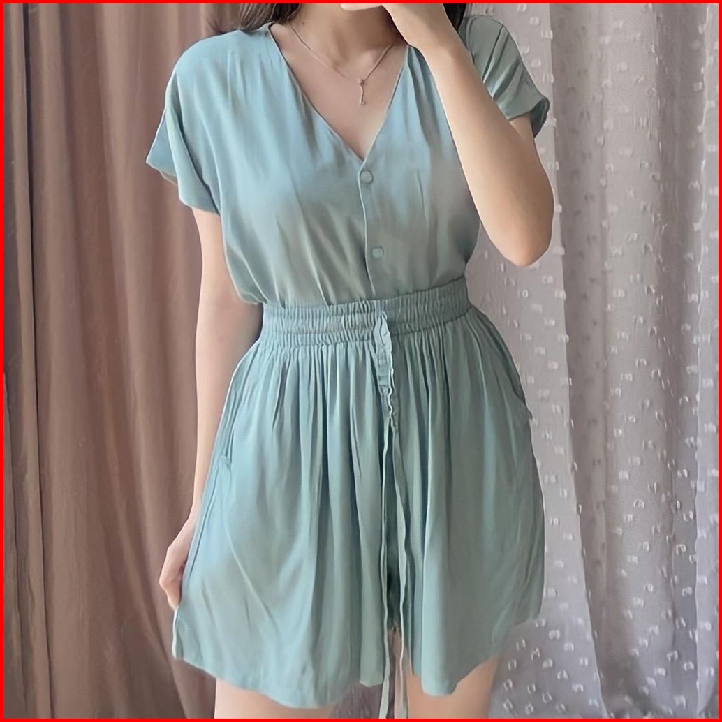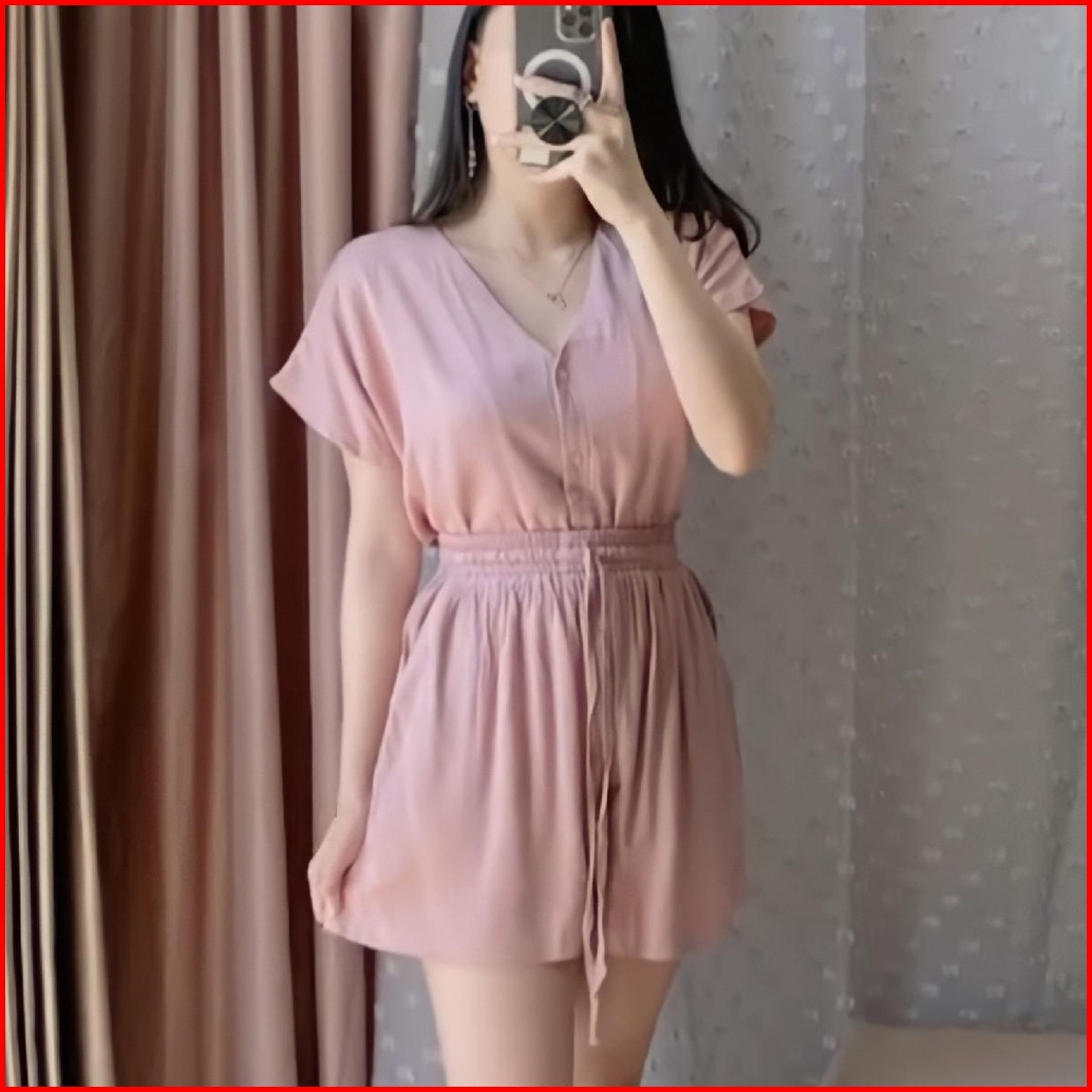 Piyama Rayon Pendek Baju Tidur Wanita Piyama Busui Full Kancing Hidup Babydoll