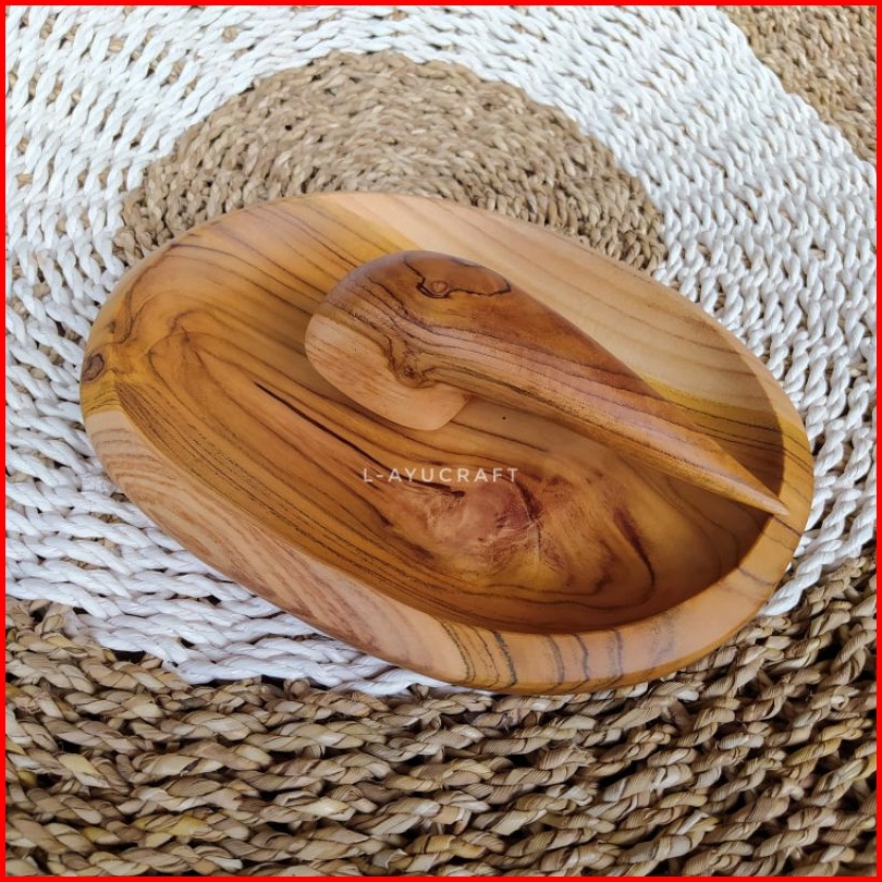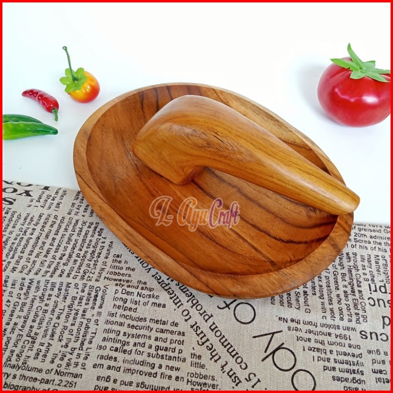 L-ayucraft Cobek Uleg Kayu Jati Oval 25x20cm