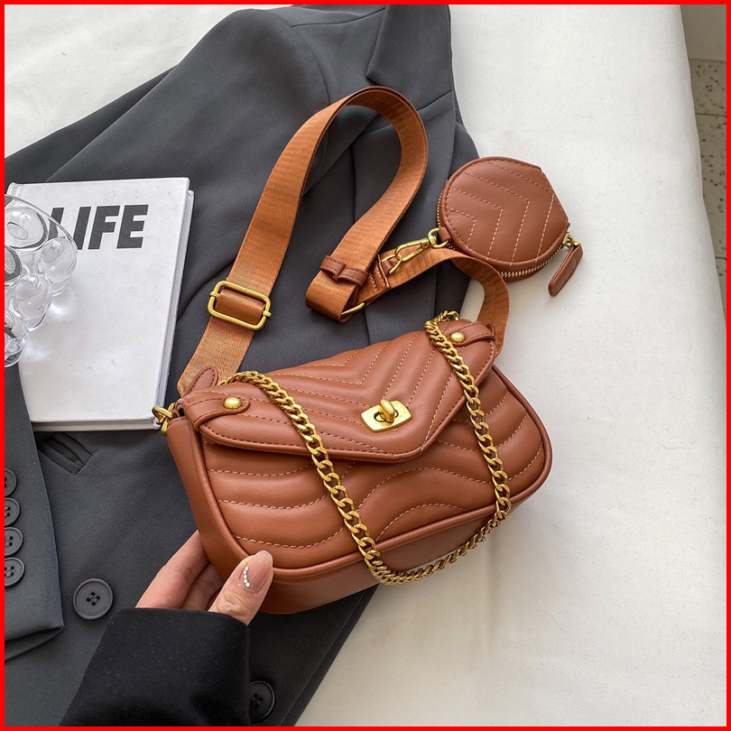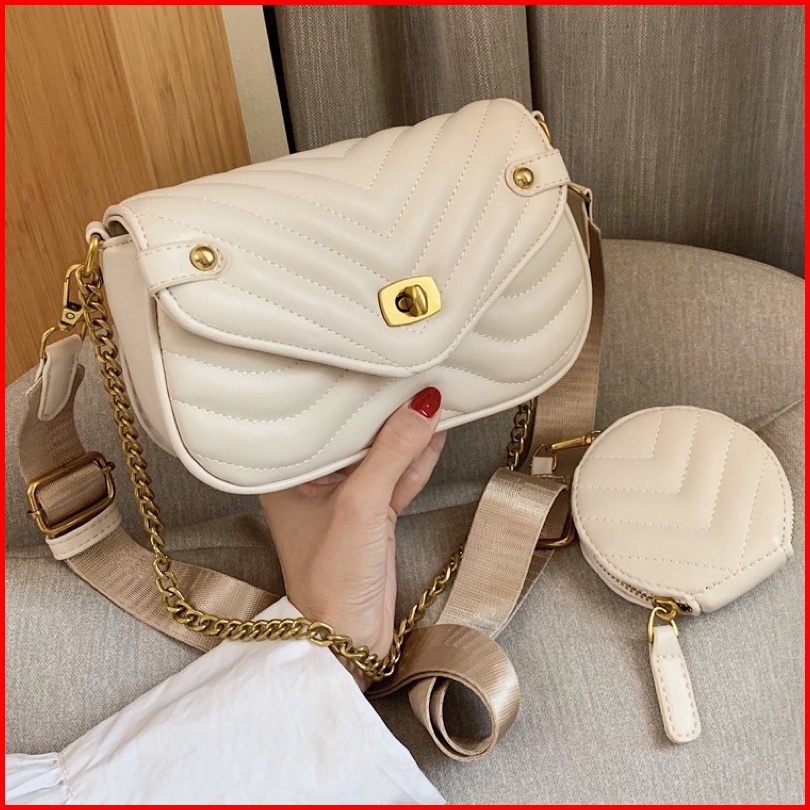 Ladiesbag - 2 In 1 Free Pouch Tas Selempang Handbag Rantai Wanita Cewek Kondangan Kantoran Lb 273