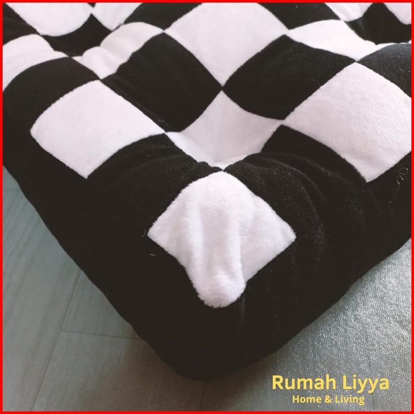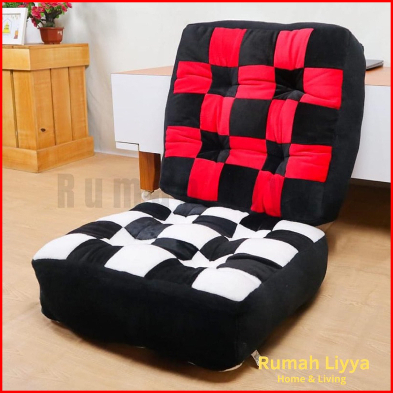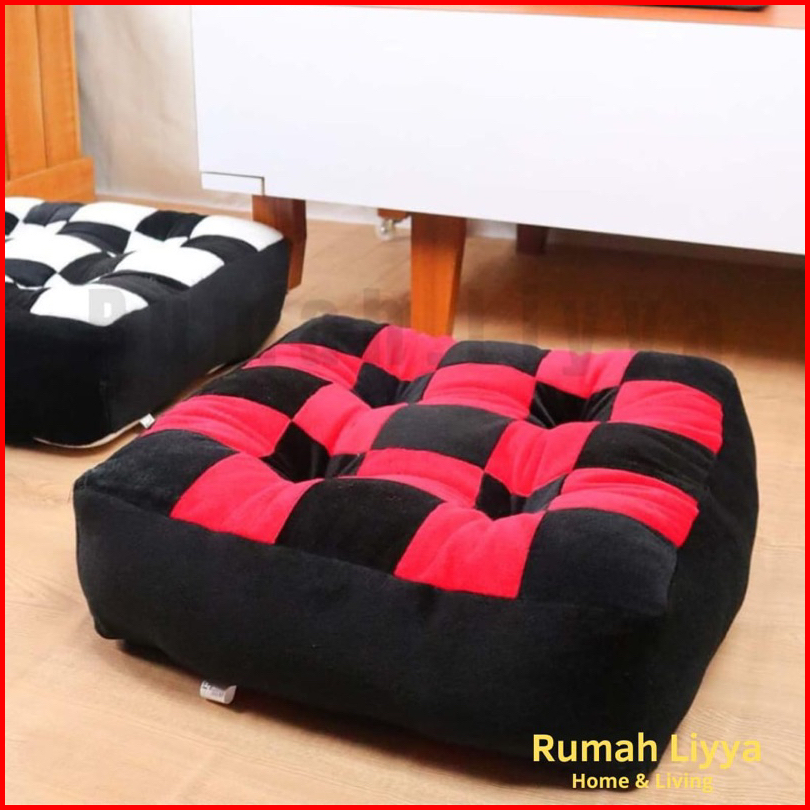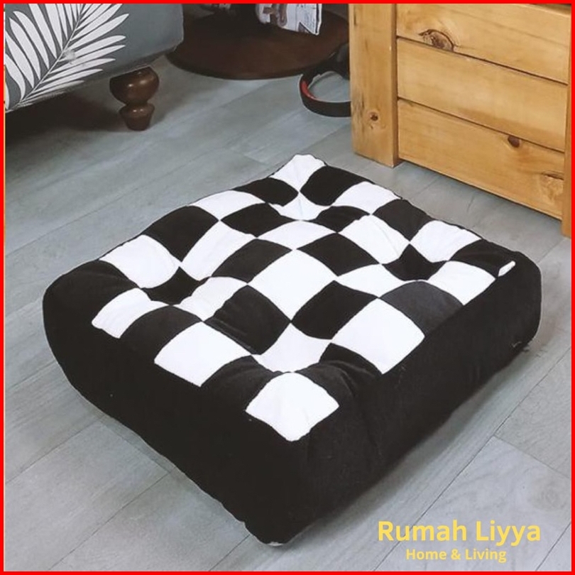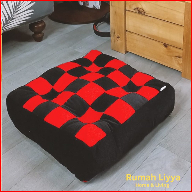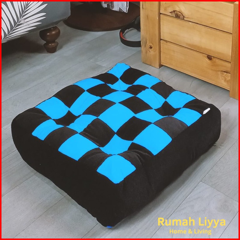 Liyya Alas Bantal Duduk Lesehan Kursi Kotak Kayu Rotan Mobil Motif Kotak-kotak