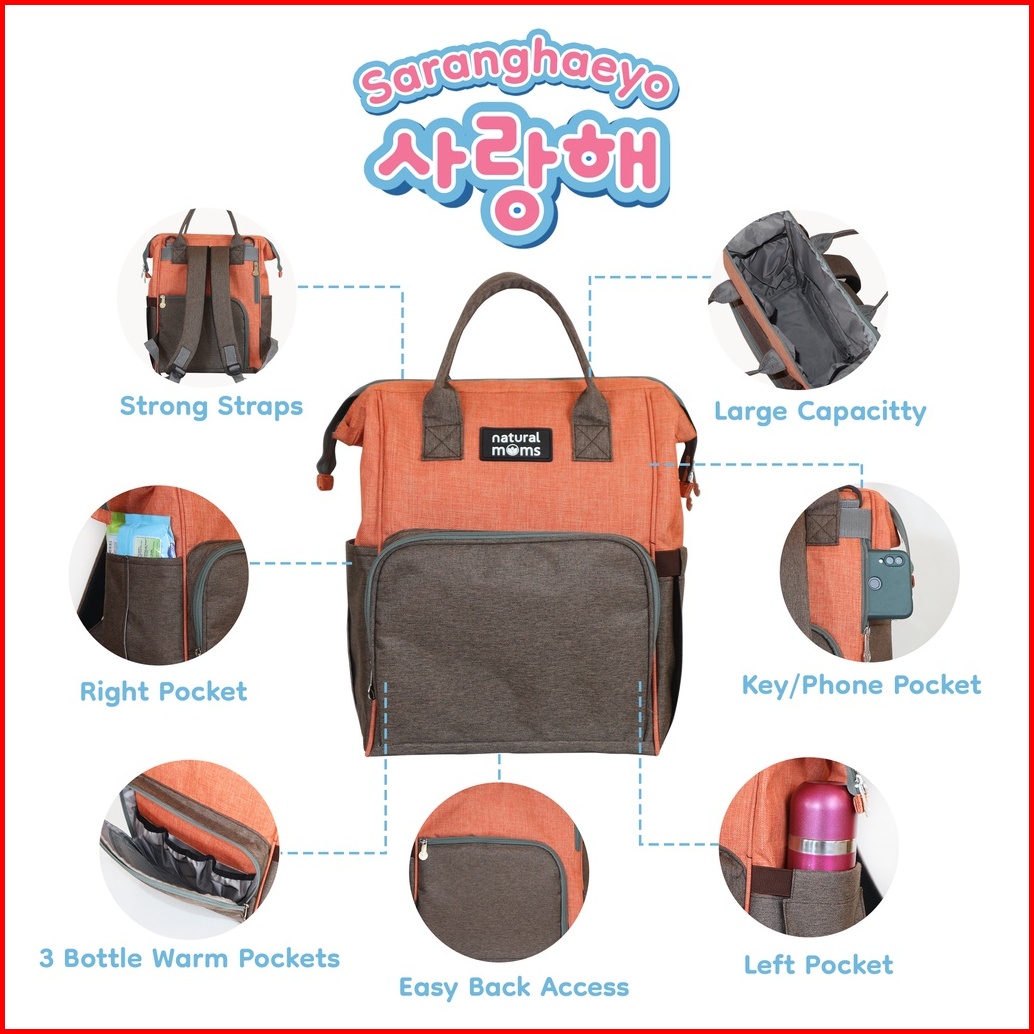 Tas Bayi Multifungsi Diaper Bag Natural Moms Saranghaeyo 14 Pockets