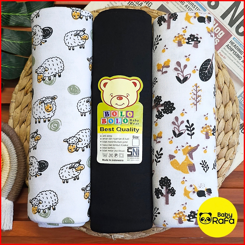 Serian Hitam - 3 Pcs Bedong Bayi Bahan Kaos Black Series 110 X 90 Cm Merk Sni Bolo - Bolo
