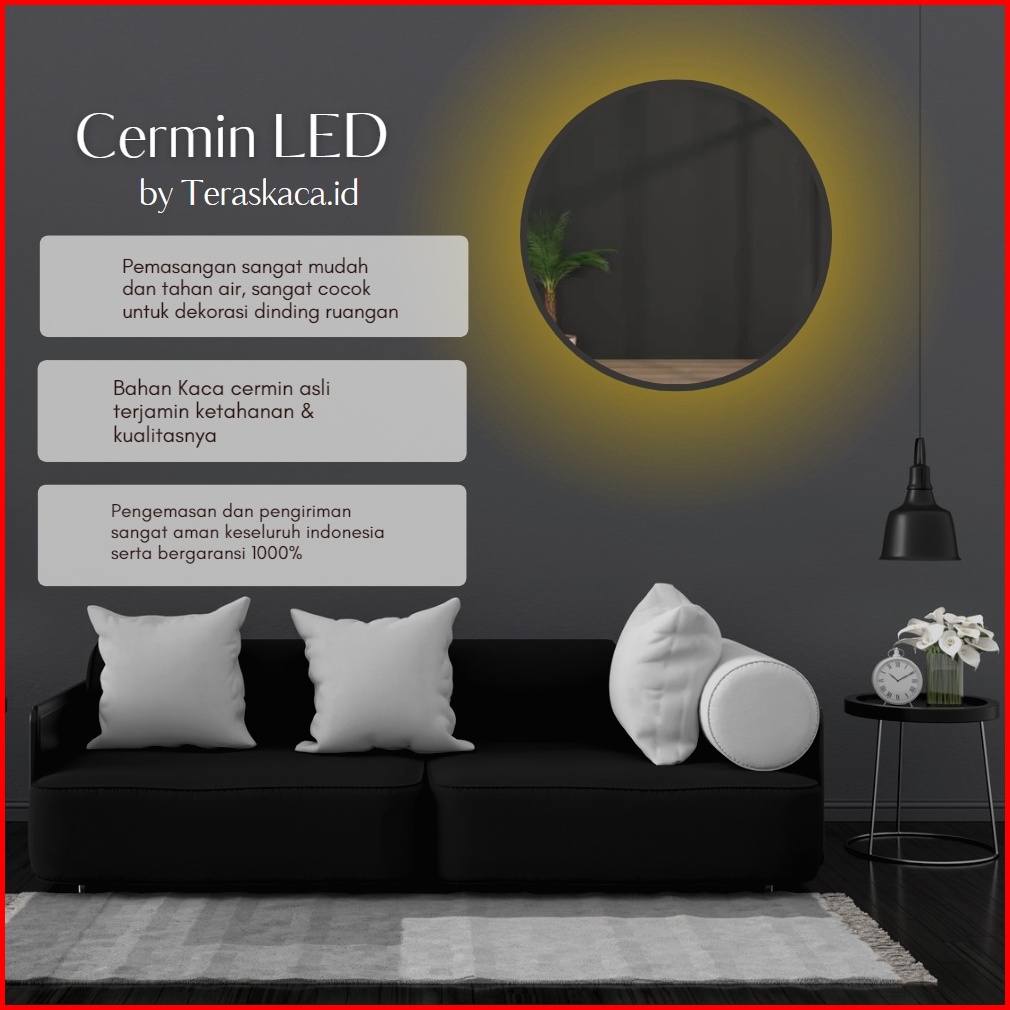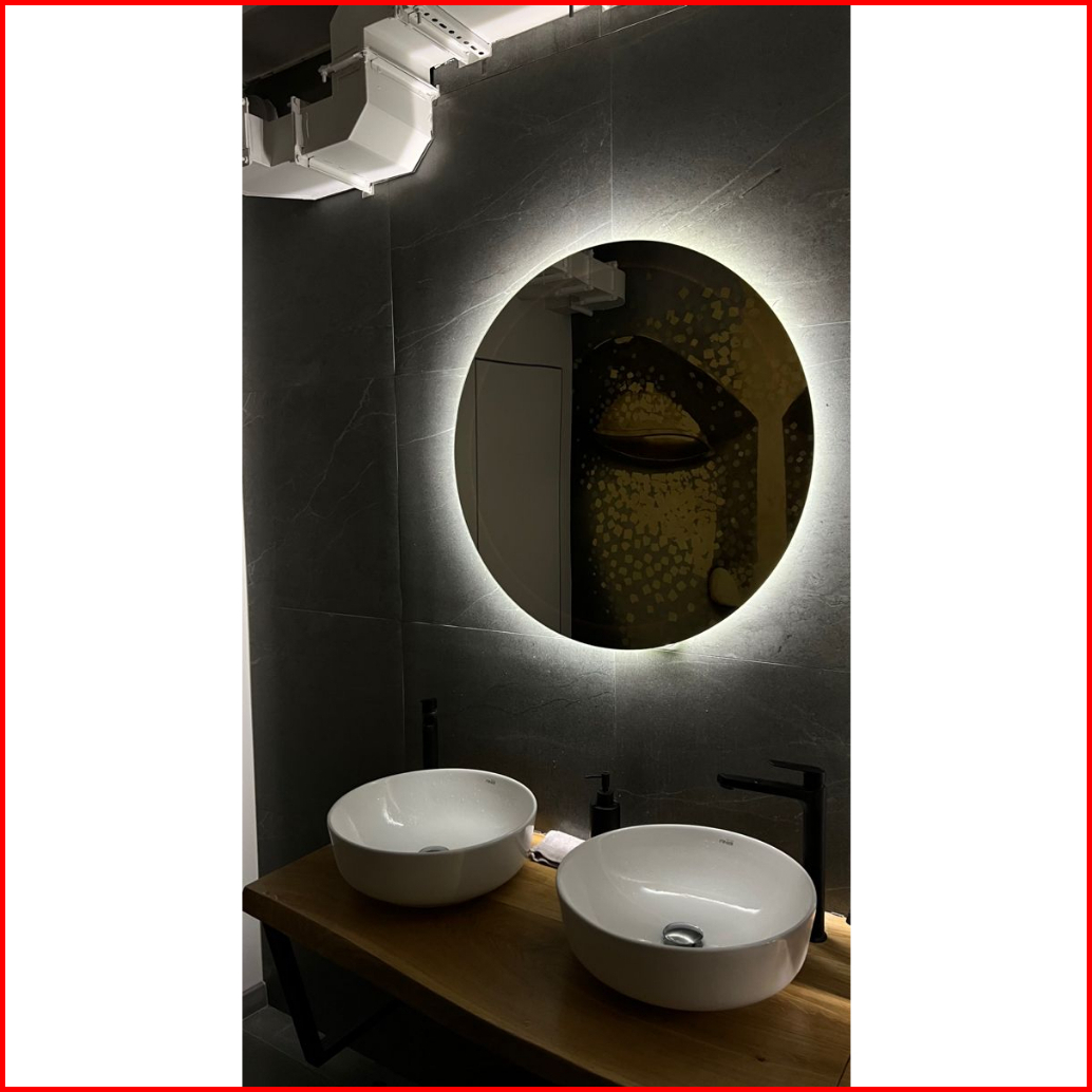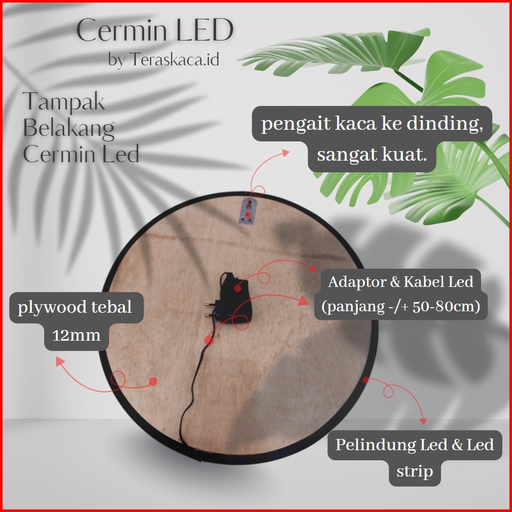 Cermin Bulat Led Besar Diameter 50cm 60cm Kaca Cermin Lampu Aesthetic Cermin Dinding Make Up Wastafel Mirror Led Lamp Ka
