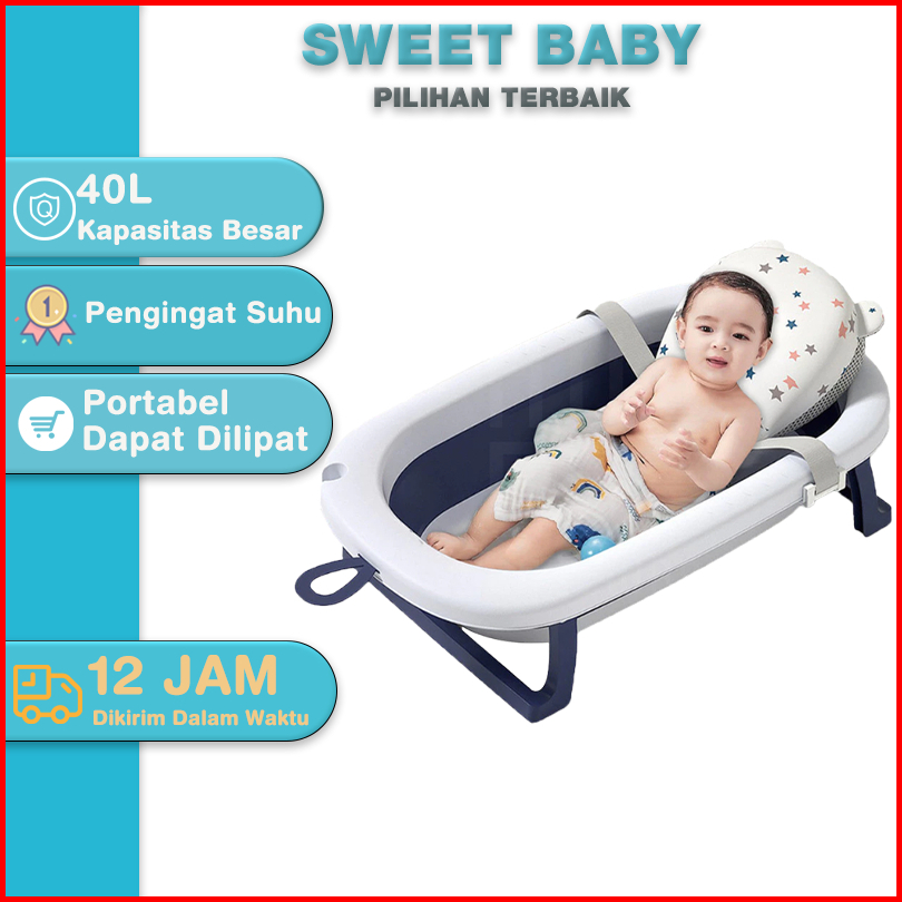 Sweetbaby Foldable Baby Bath Tub Bak Mandi Bayi Lipat Dengan Bantal Mandi Tempat Mandi Bayi Portable