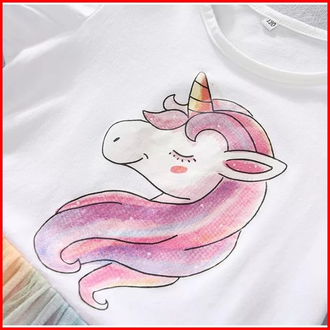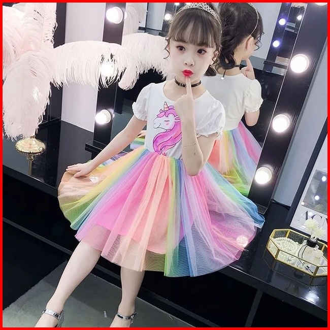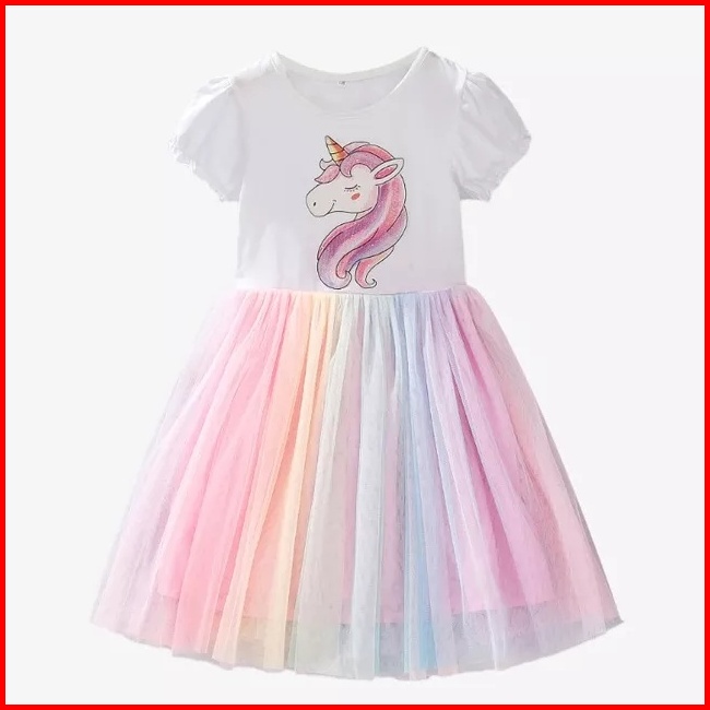 Gaun Anak Kuda Poni Dress Pelangi Dress Tutu Anak Motif Unicorn Costum Anak Lucu