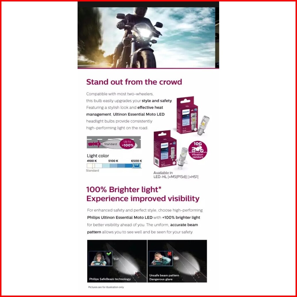 Lampu Depan Motor Led Philips M5 6500k 12 Volt 6 Watt Led 2 Sisi Wajib Arus Dc Original Philips 100