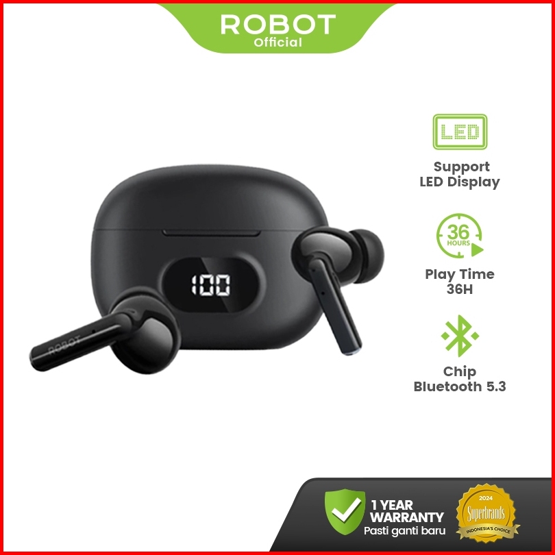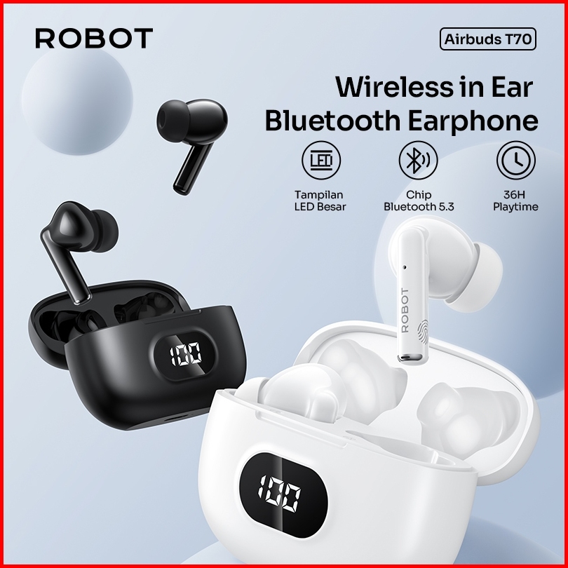 Robot True Wireless Earbuds Deep Bass Tws Bluetooth 5.3 Smart Control Hd Call Earphone Airbuds T70 Original - Garansi 1