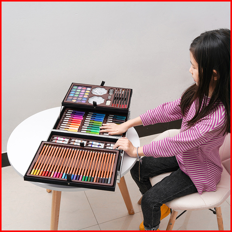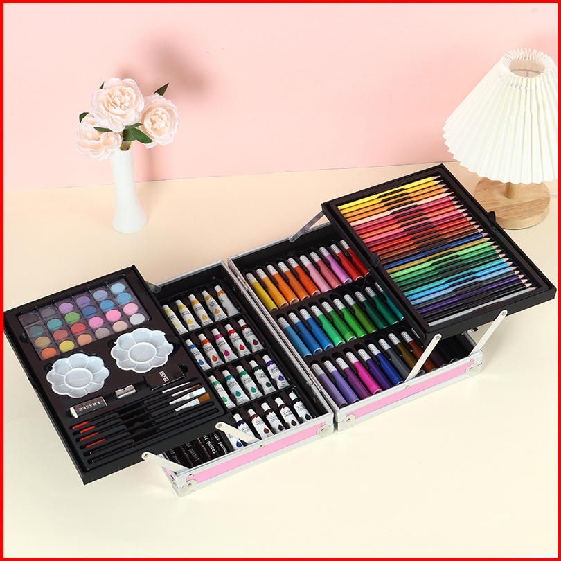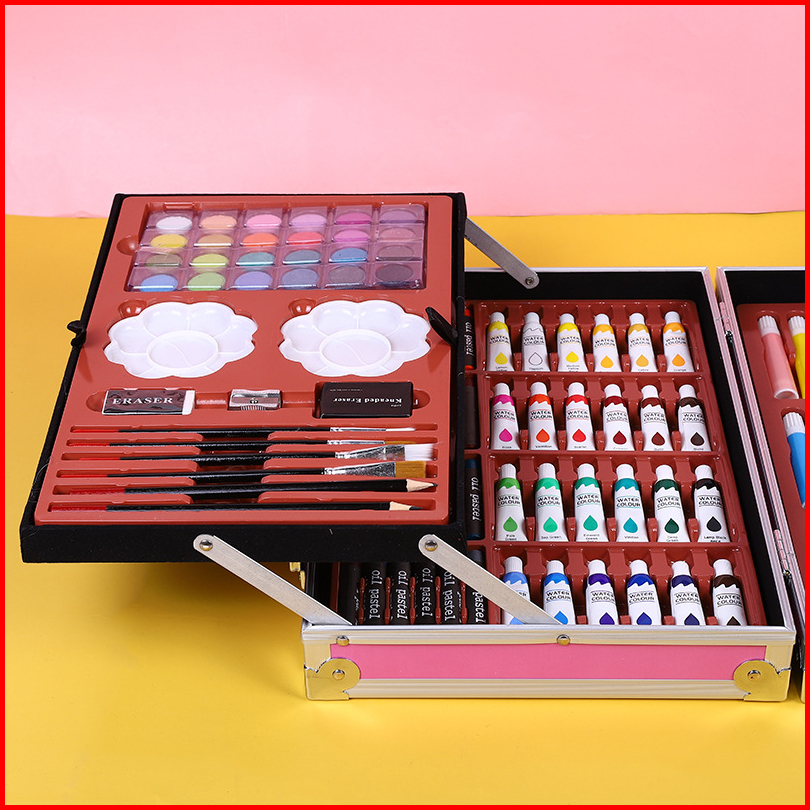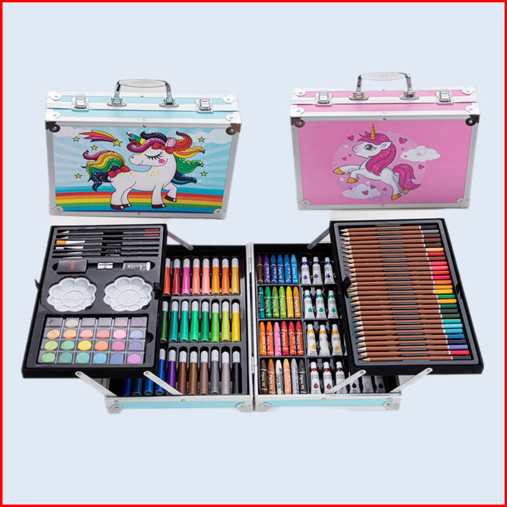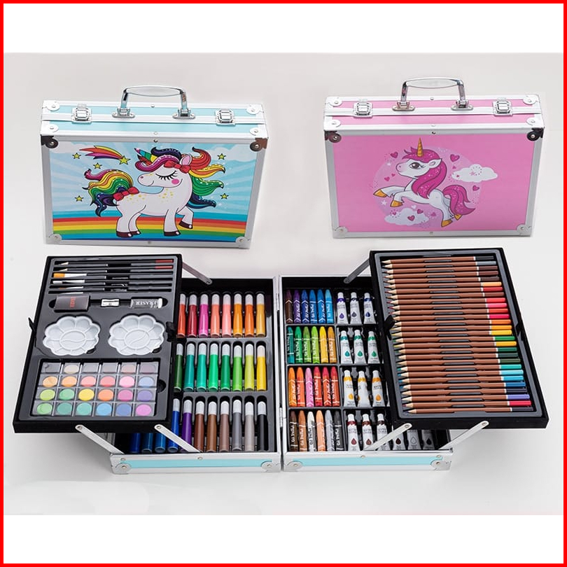 Wd Crayon Set 145pcs Koper Aluminium Besi Krayon Pensil Warna 145 Pcs Box Alat Lukis Anak Koper Set
