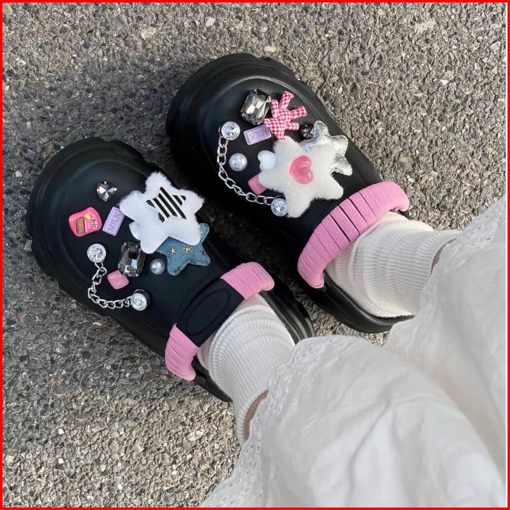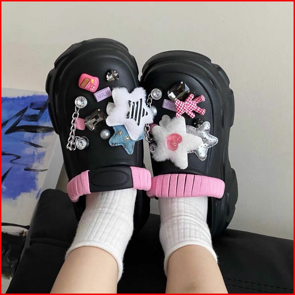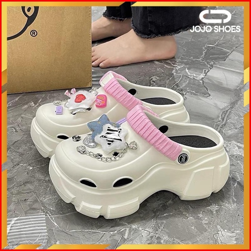 Jojo Shoes Sandal Slop Baim Wanita Bahan Karet Tebal Dengan Jibbitz Antislip 8888-3-36-41