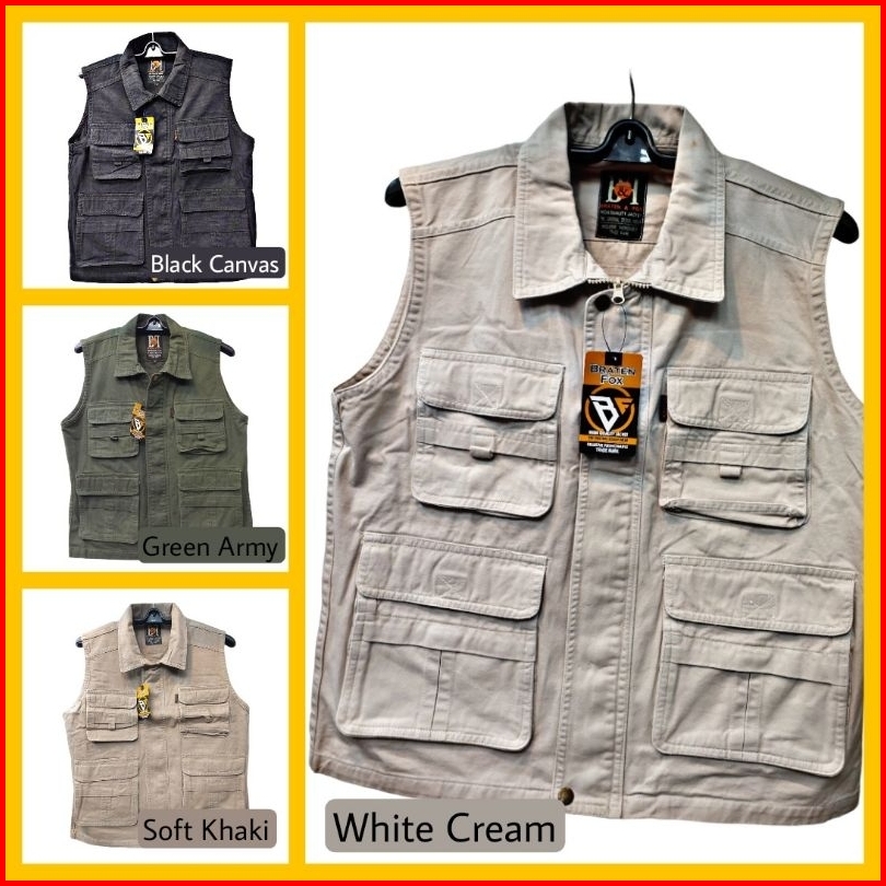 Rompi Kanvas Outdoor Kerah Seragam Cargo Lapangan Wartawan Bordir Relawan Partai Vest By Braten Fox
