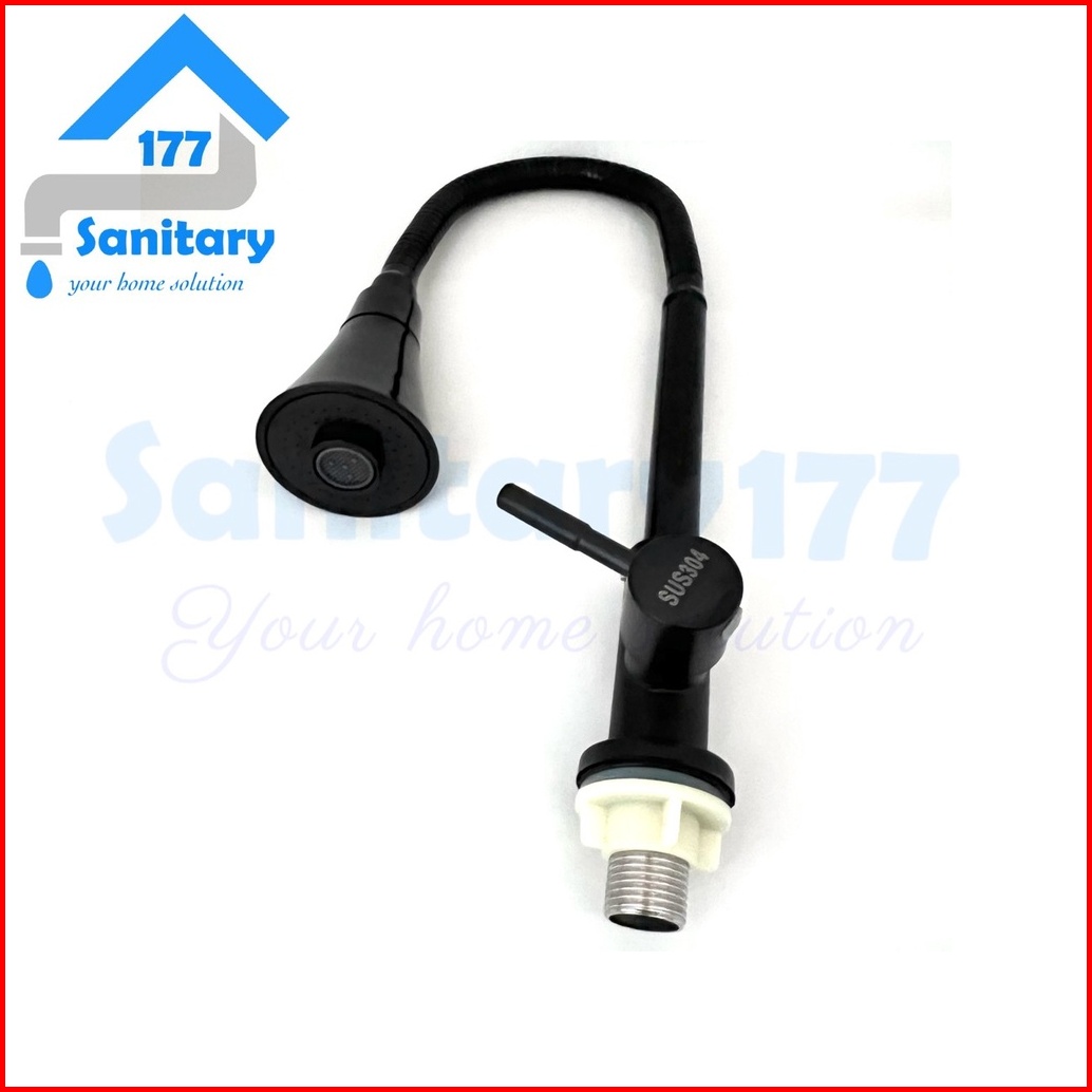 Kran Air Sink Stainless 304 Fleksibel Hitam 04bbla-keran Air Dapur Wastafel Black Cuci Piring Tembok Angsa Flexible 2in1