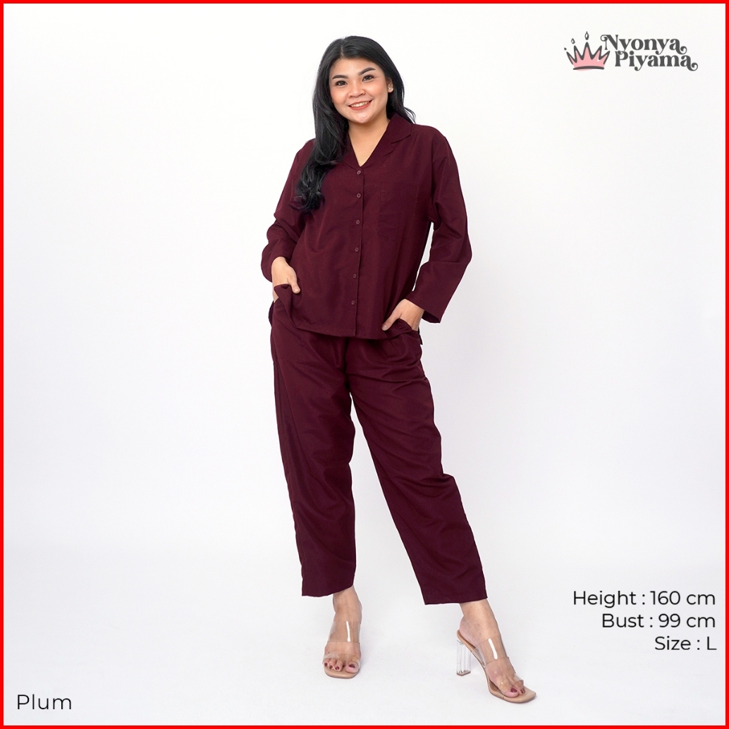 Nyonya Piyama Poly Bamboo Set Lengan Panjang Polos Comfy