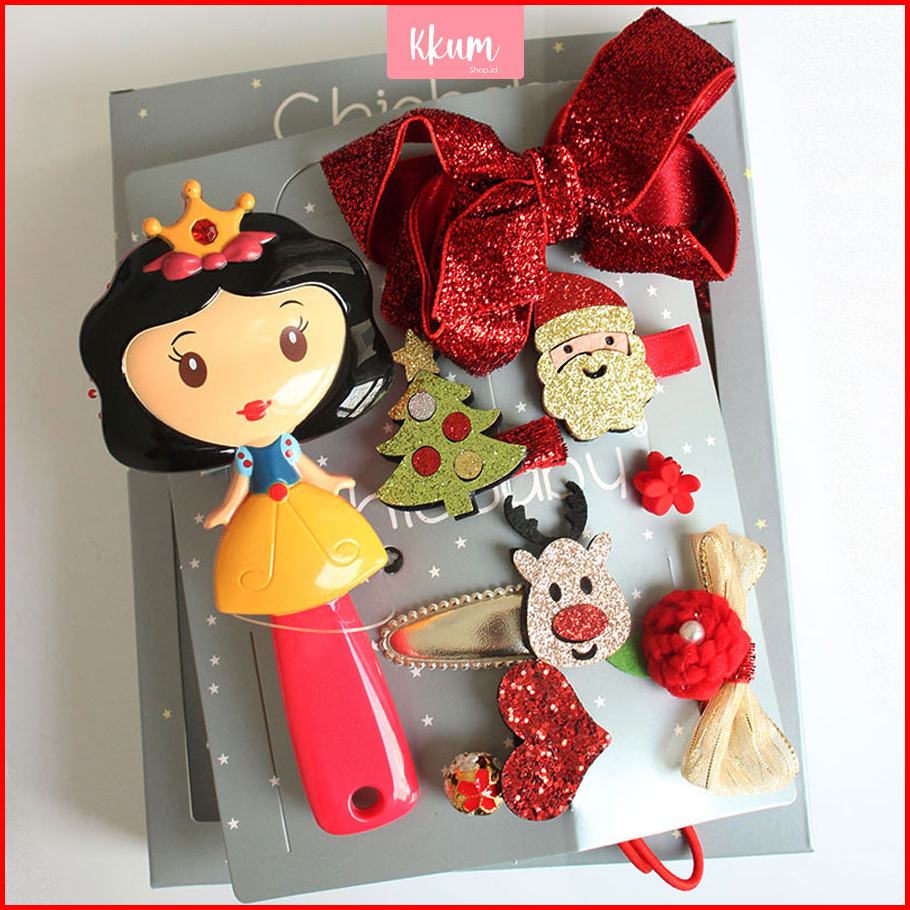 8 In 1 Set Sisir Jepitan Baby Paket Aksesoris Rambut Disney Princess Gift Set Hampers Girls