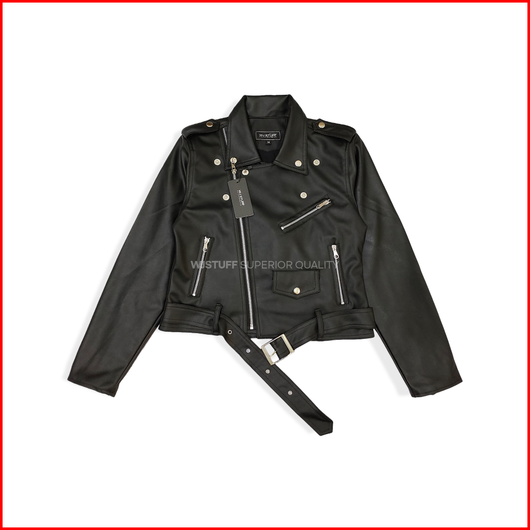 Wj Stuff - Taeyeon Jaket Kulit Sintetis Wanita Rock N Roll - Crop Mode