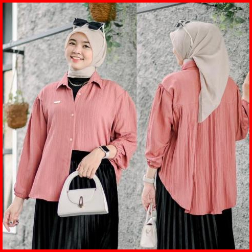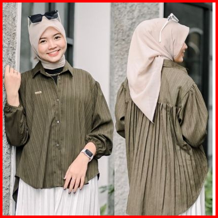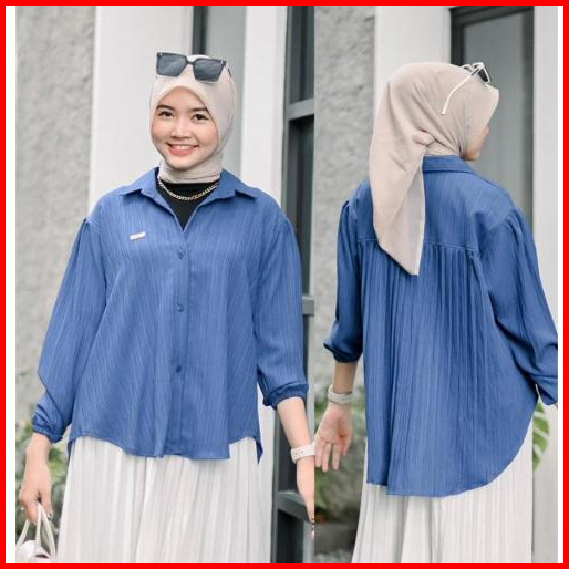 Munna Blouse Plisket Laddy Crush Kemeja Blouse Kekinian Korean Style