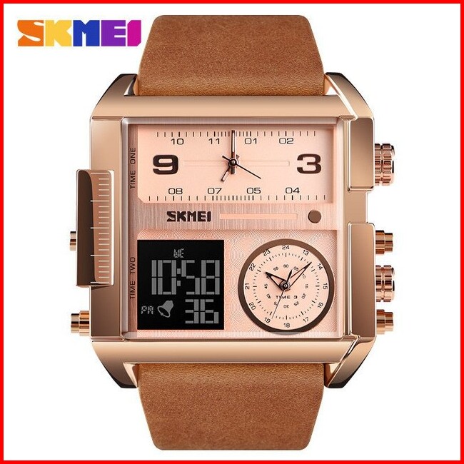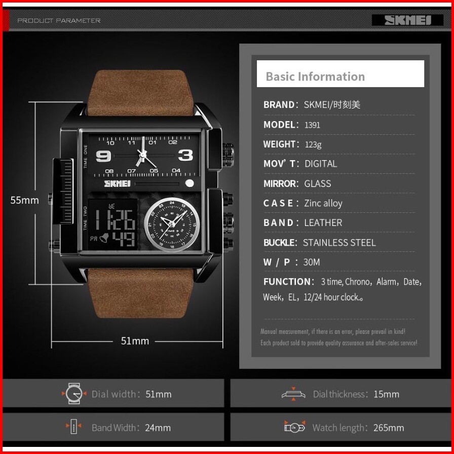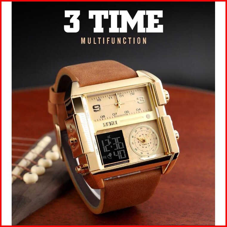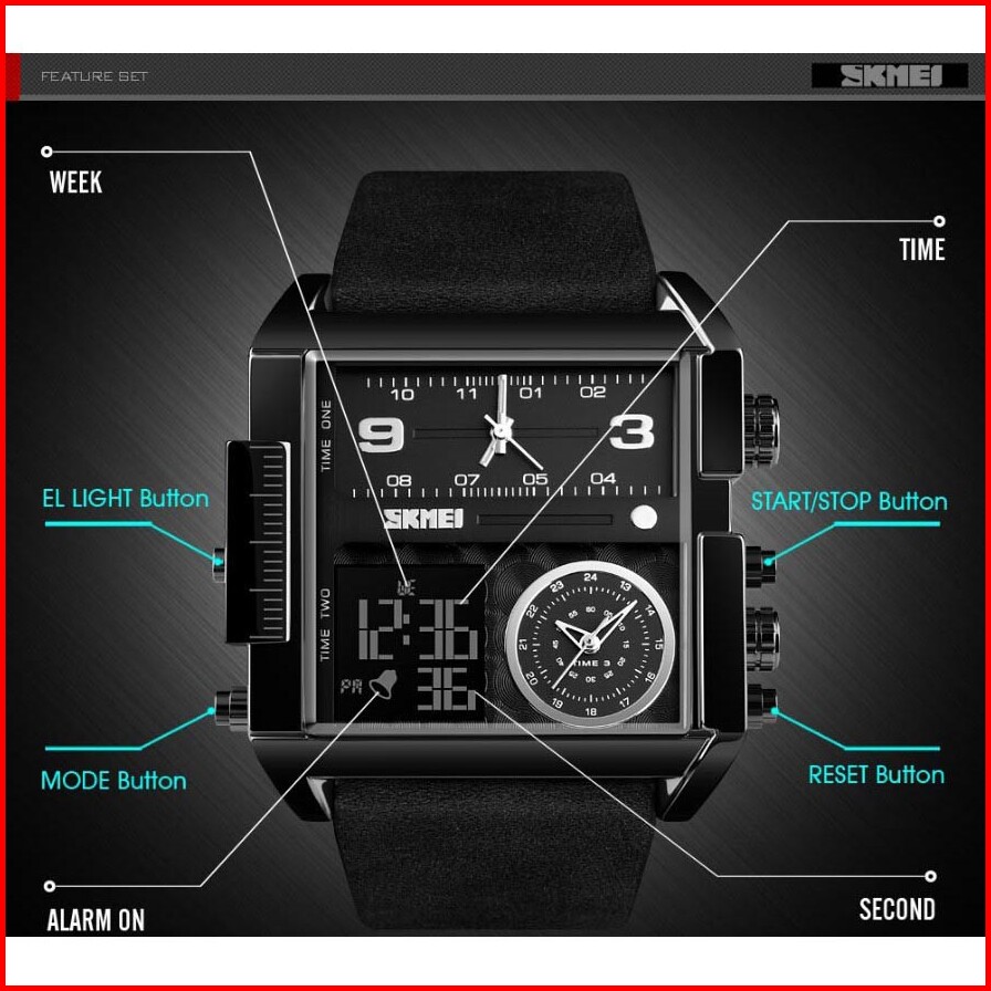 Skmei Vogue Jam Tangan Digital Analog Pria 1391 3 Time Bentuk Kotak Jam Tangan Keren Water Resistant