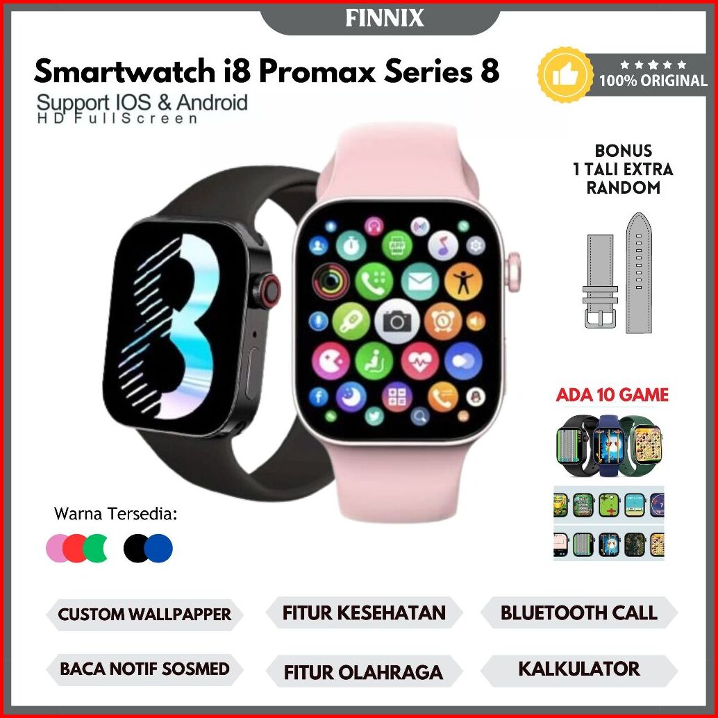 Smartwatch Series 8 I8 Promax Original Anti Air Ada 10 Game Bisa Custom Foto Telponan Notif Sosmed Jam Tangan Pintar Wat