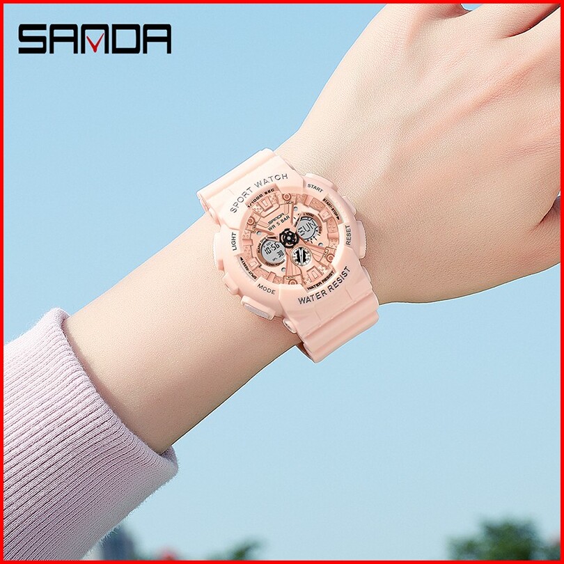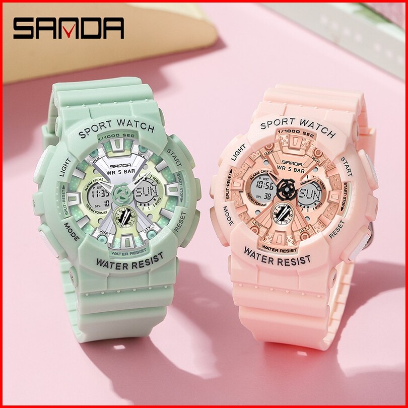 Sanda 6068 Jam Tangan Wanita Digital Analog Tali Rubber Chronograph Anti Air Currenos