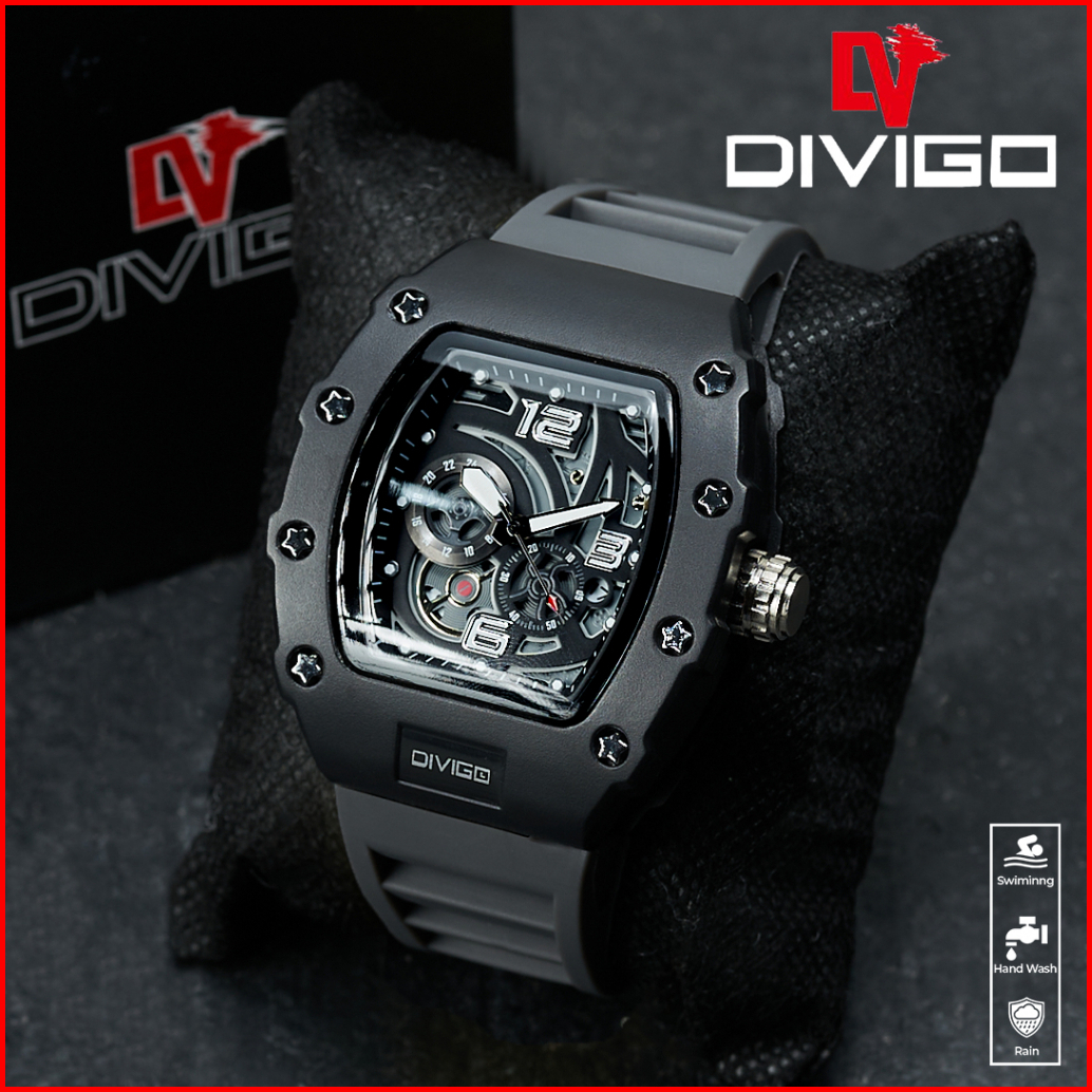 Jam Tangan Divigo Rm Dv-2304 Analog Sport Original Tahan Air Strab Rubber Tanggal Aktif
