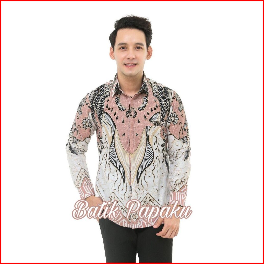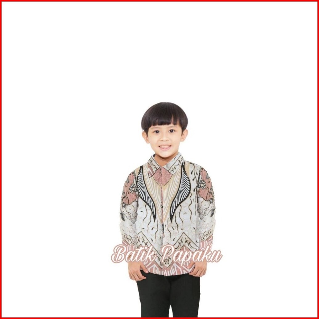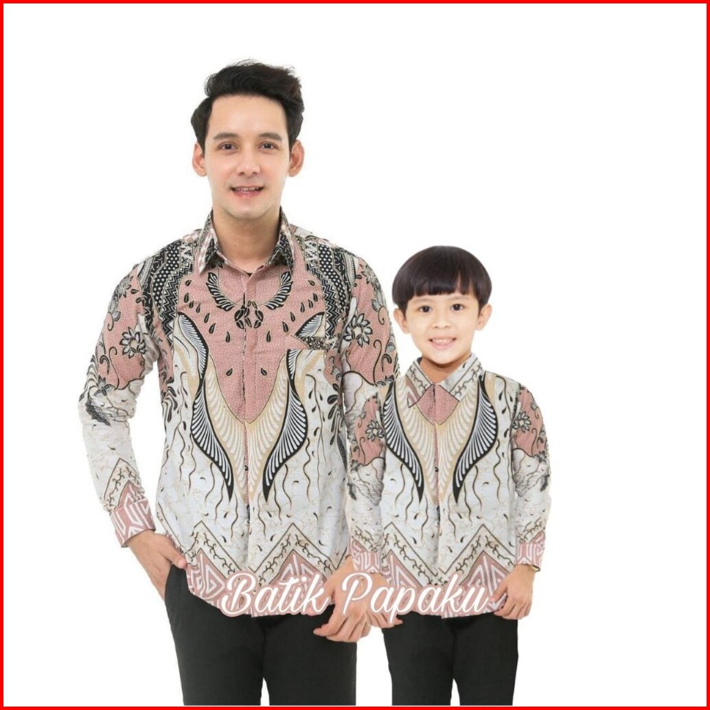 Kemeja Batik Anak Laki-laki Lengan Panjang Batik Ayah Dan Anak Cowok Warna Peach Pink Salem Kombinasi Putih Motif Laskar