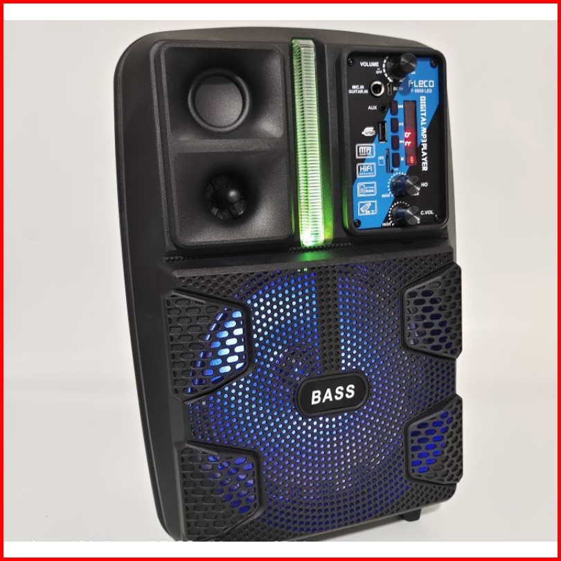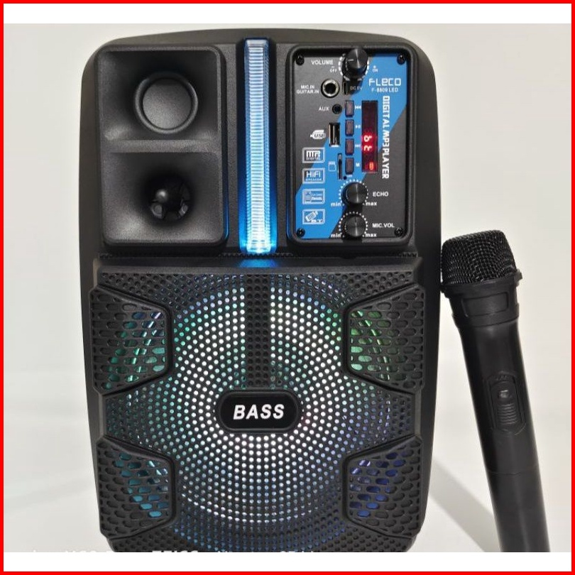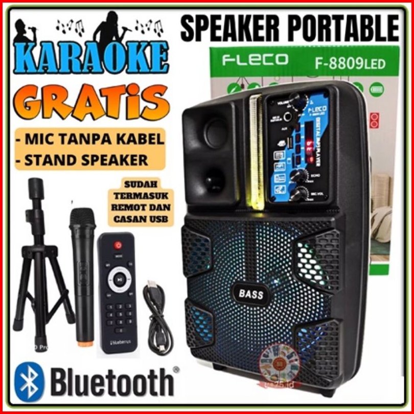 Speaker Bluetooth Fleco X-bass F-8809led 8 5 Inchi Free Tripod Dan Microphone Wireless Karaoke Remot Control Salon Aktif