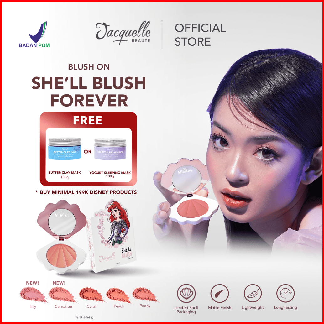 Jacquelle She Ll Blush Pressed Powder Blush On - Disney Princess Ariel Shell - Perona Pipi Kerang