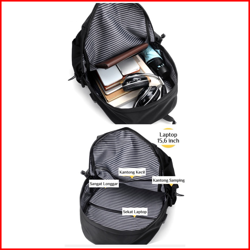 Tas Pria 70002 - Tas Ransel Nilon Polos Tas Pria Kerja Kuliah Sekolah Travel Hiking Backpack Tas Ransel Laptop - E