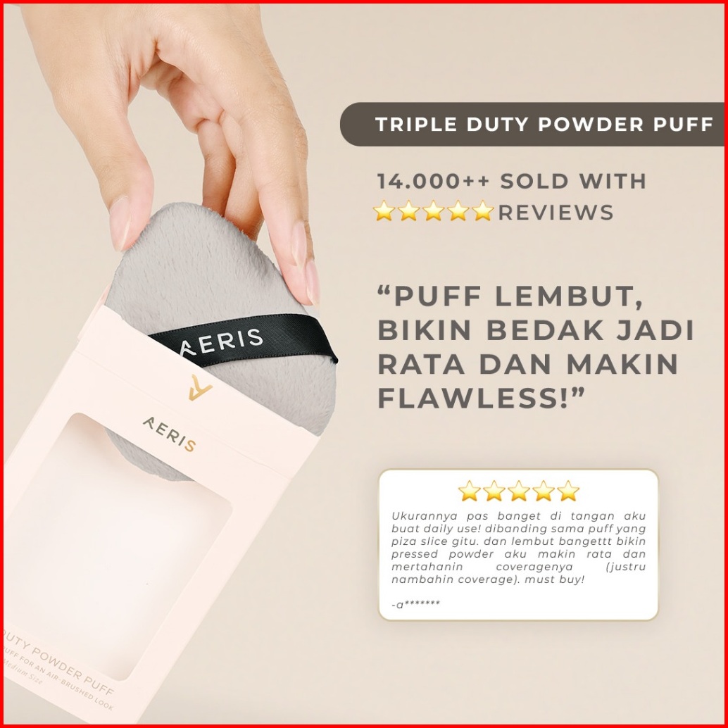 Aeris Beaut Triple Duty Powder Puff Spons Make Up Multifungsi Untuk Bedak Tabur Dan Padat