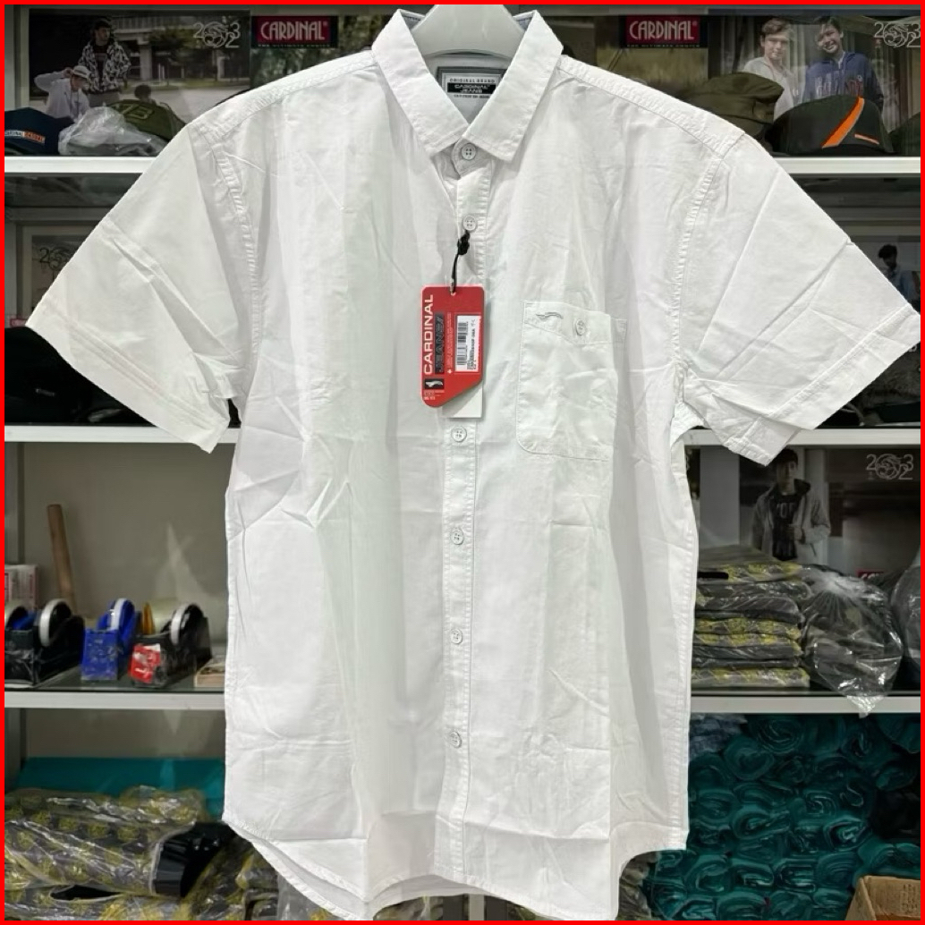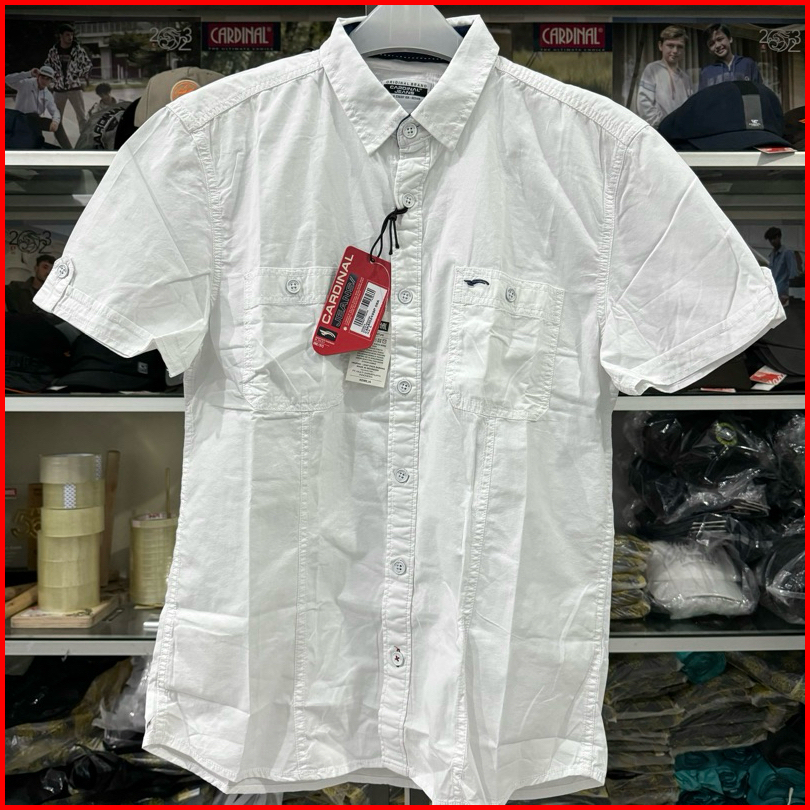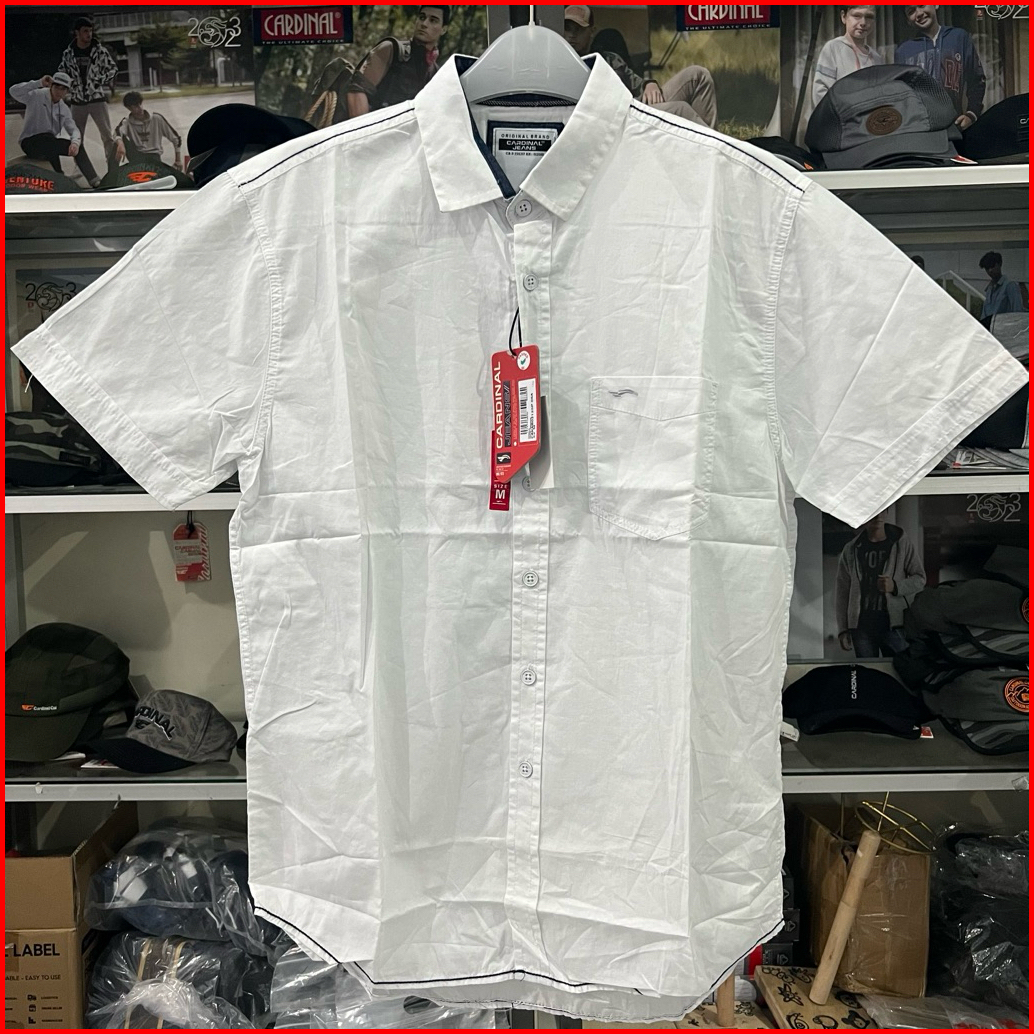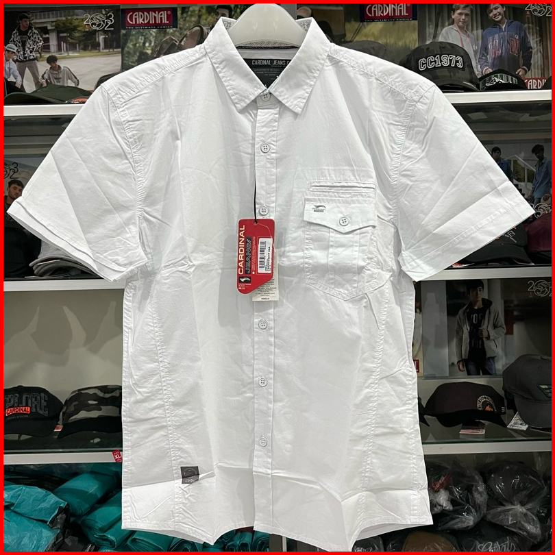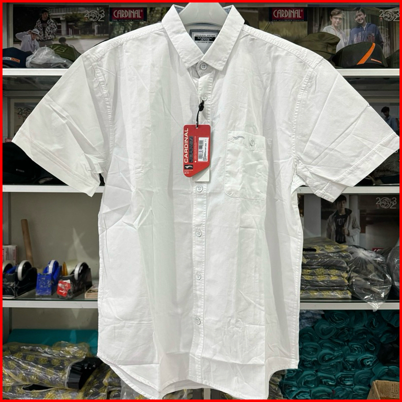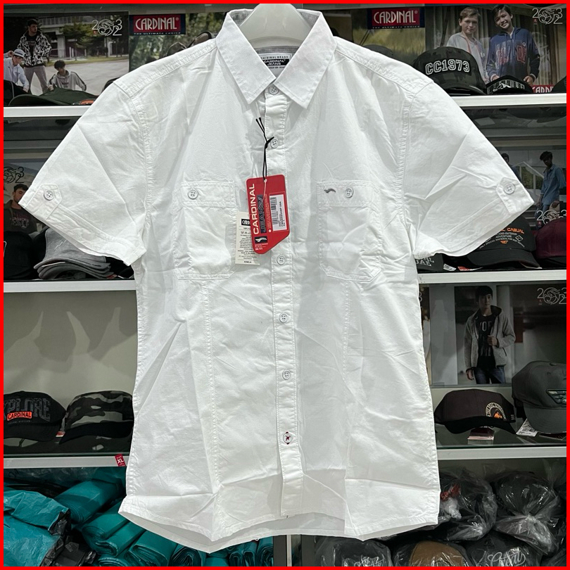 Kemeja Cardinal Putih Lengan Pendek Katun Slim Fit