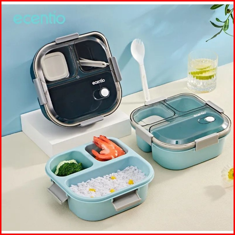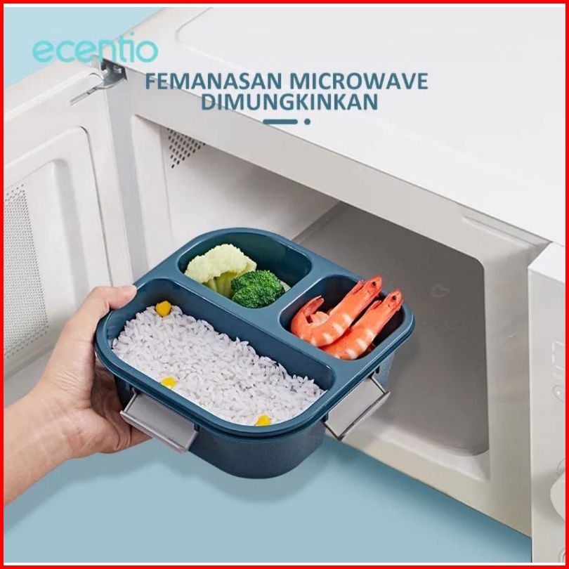 Ecentio Kotak Bekal Anti Tumpah 3 Grid 1100ml Kotak Makan Wadah Bekal Anti Tumpah Kotak Sup 100ml Free Sendok