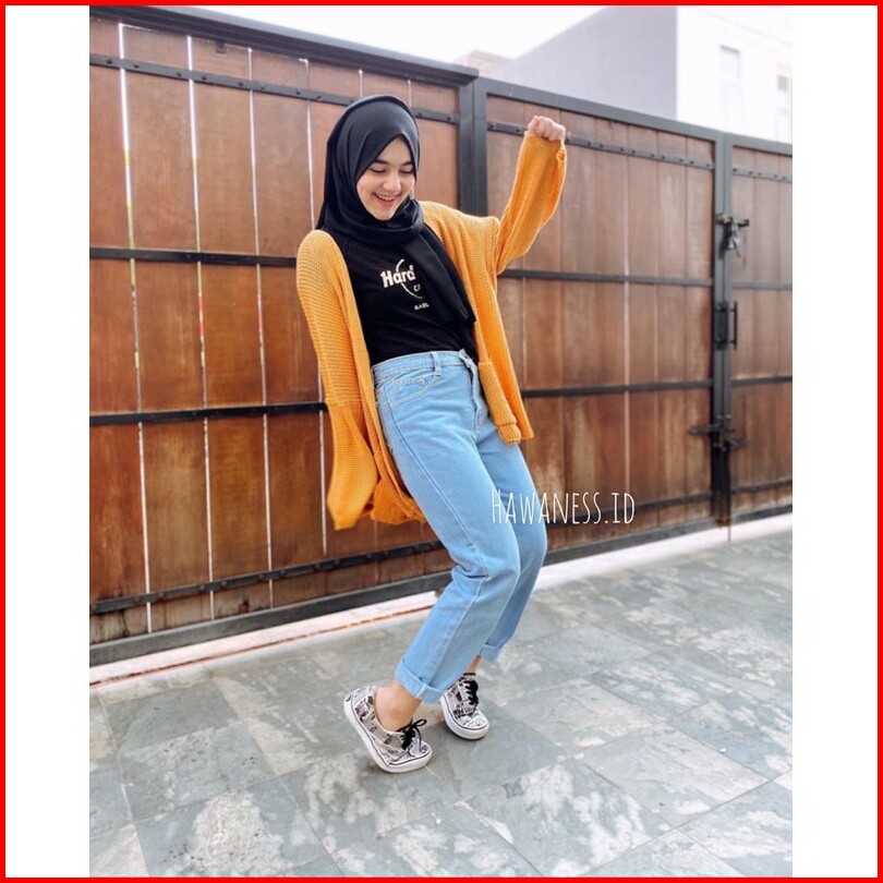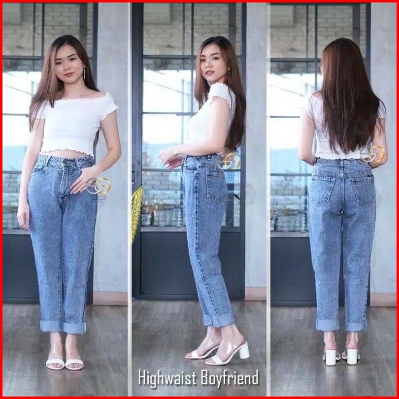 Celana Boyfriend Jeans Snow Wanita Free Belt