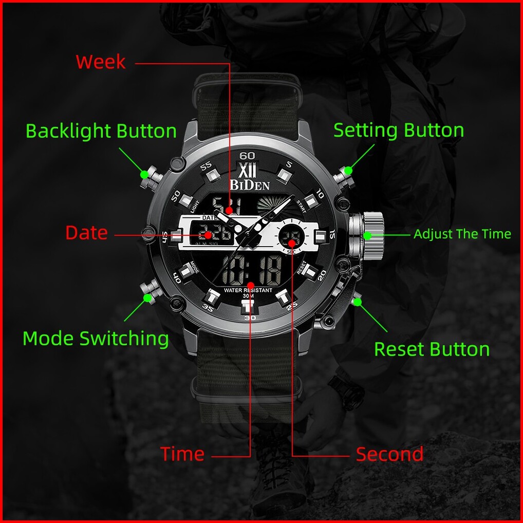 Biden Jam Tangan Pria Olahraga Multi Tahan Air Atas Bisnis Chronograph Jam Tangan
