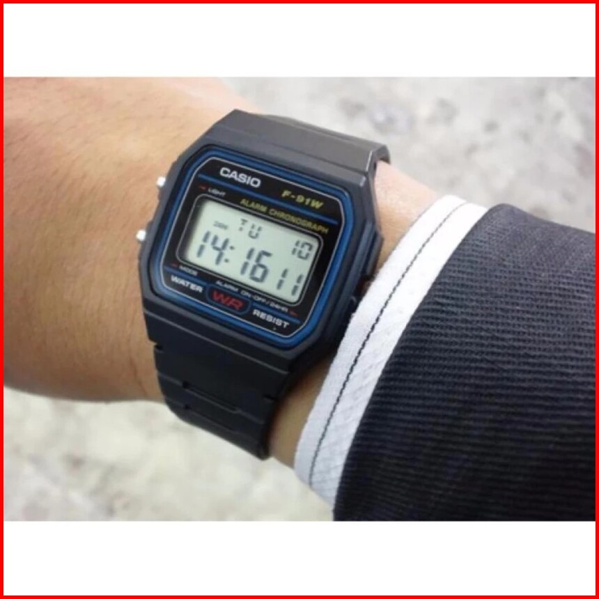 Casio General F-91w-1dg F91w-1dg Jam Tangan Pria - Digital - Karet - Hitam Biru