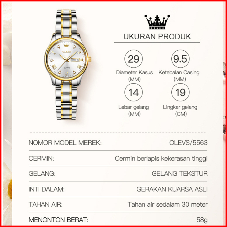 Olevs Jam Tangan Wanita Korea Kecil Anti Air Original Cewek Kalender Luminous Women Watch 5563