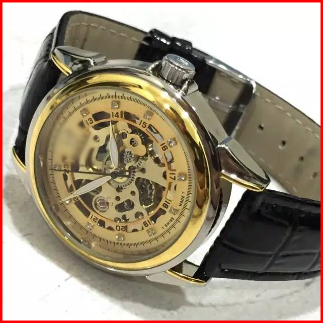 Jam Tangan Skeleton Kulit Classic Otomatis Tanpa Baterai Pria