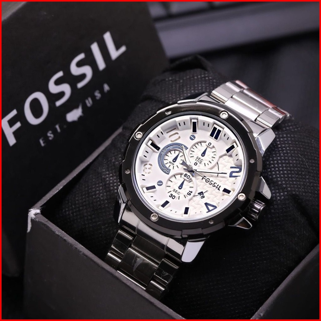 Jam Tangan Pria 4 Varian Sporty Tanggal Aktif Crono Variasi Rantai Stainless Free Box Batrai F259s